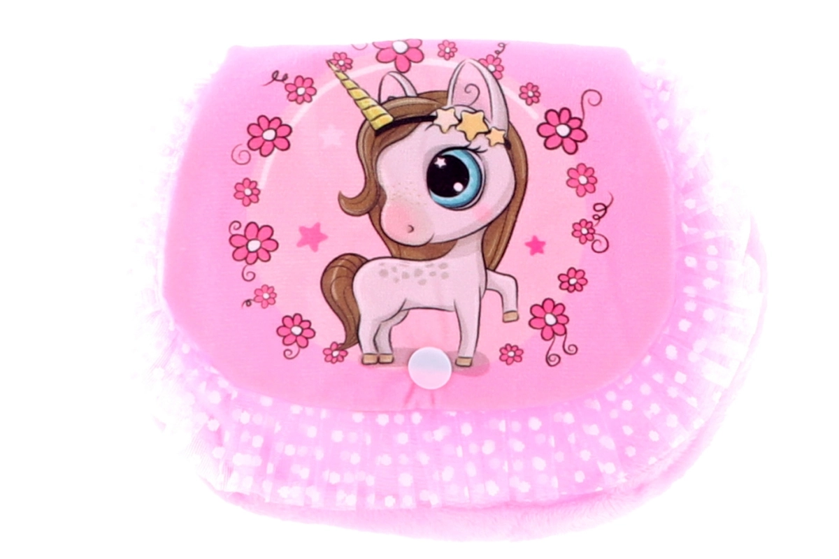 Schattig pluchen schoudertasje met een eenhoornmotief, ideaal voor kleine spulletjes voor dagelijks gebruik. Het heeft een verstelbare schouderband met een lengte tot 2×50 cm, een praktische ritssluiting en compacte afmetingen van 19 × 15 × 2 cm. Licht, zacht en comfortabel om te dragen.