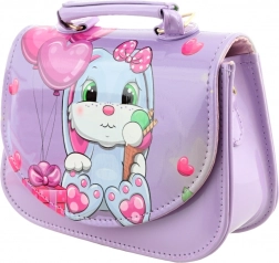 Glanzende kinderhandtas met konijntje over de schouder, paars