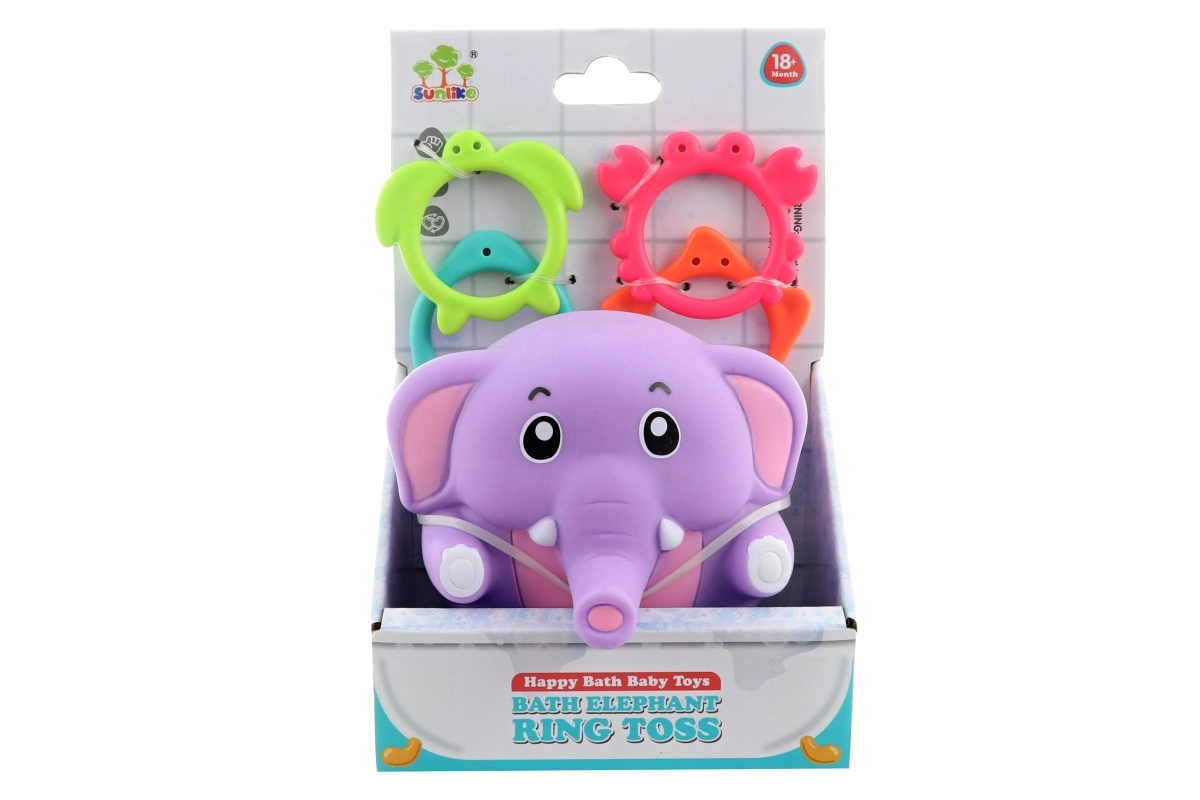 Een leuk spel voor kleine kinderen waarbij je ringen op de slurf van een schattige olifant gooit. Stimuleert fijne motoriek, oog-handcoördinatie en geduld. Gekleurde ringen met zeedieren nodigen uit tot spelen en het leren van vormen en kleuren. Ideale speelgoed voor kinderen vanaf 18 maanden.