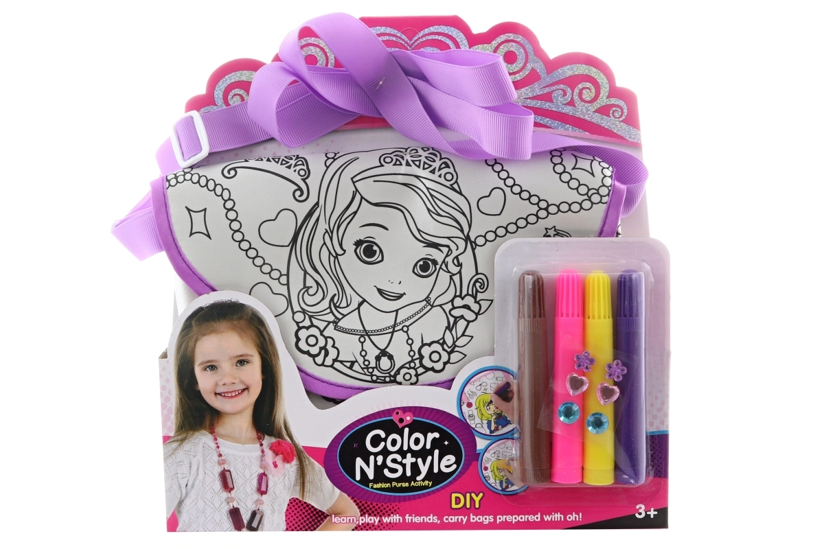 De creatieve kleurentas met prinsessenmotief zal elke kleine kunstenares blij maken. Voorzien van een verstelbare paarse schouderriem, klittenbandsluiting en 4 kleurstiften om zelf in te kleuren. Geweldig voor het stimuleren van creativiteit en de fijne motoriek. Geschikt voor kinderen vanaf 3 jaar.
