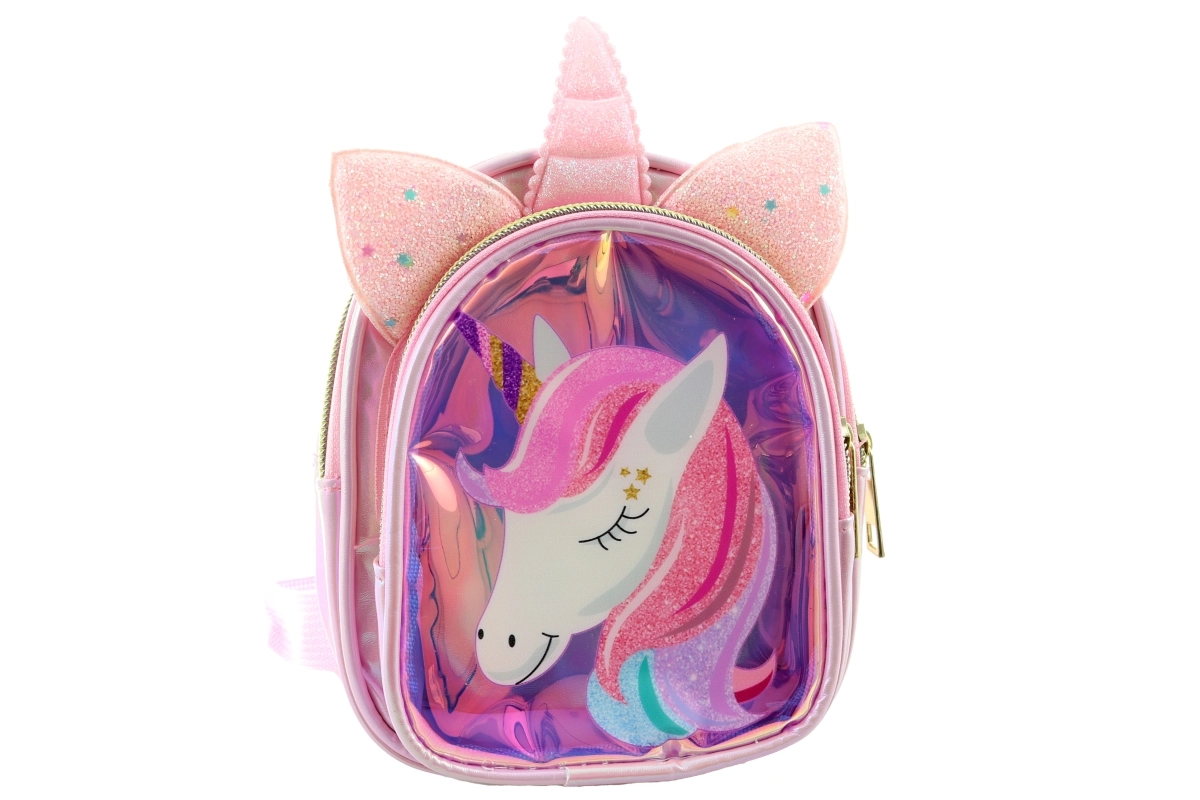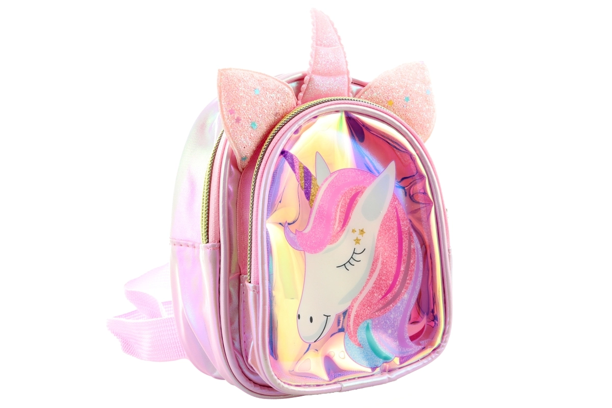 Een schattige kinder rugzak met eenhoornthema die elke kleine reiziger zal verheugen. Hij heeft twee vakken met rits, waaronder een transparant voorvak voor kleine spulletjes. De hele rugzak is van glanzend, sprankelend materiaal dat de aandacht trekt en makkelijk te onderhouden is. De compacte afmetingen 14 × 17 × 8 cm zijn ideaal voor een snack, speelgoed of schatten voor onderweg.