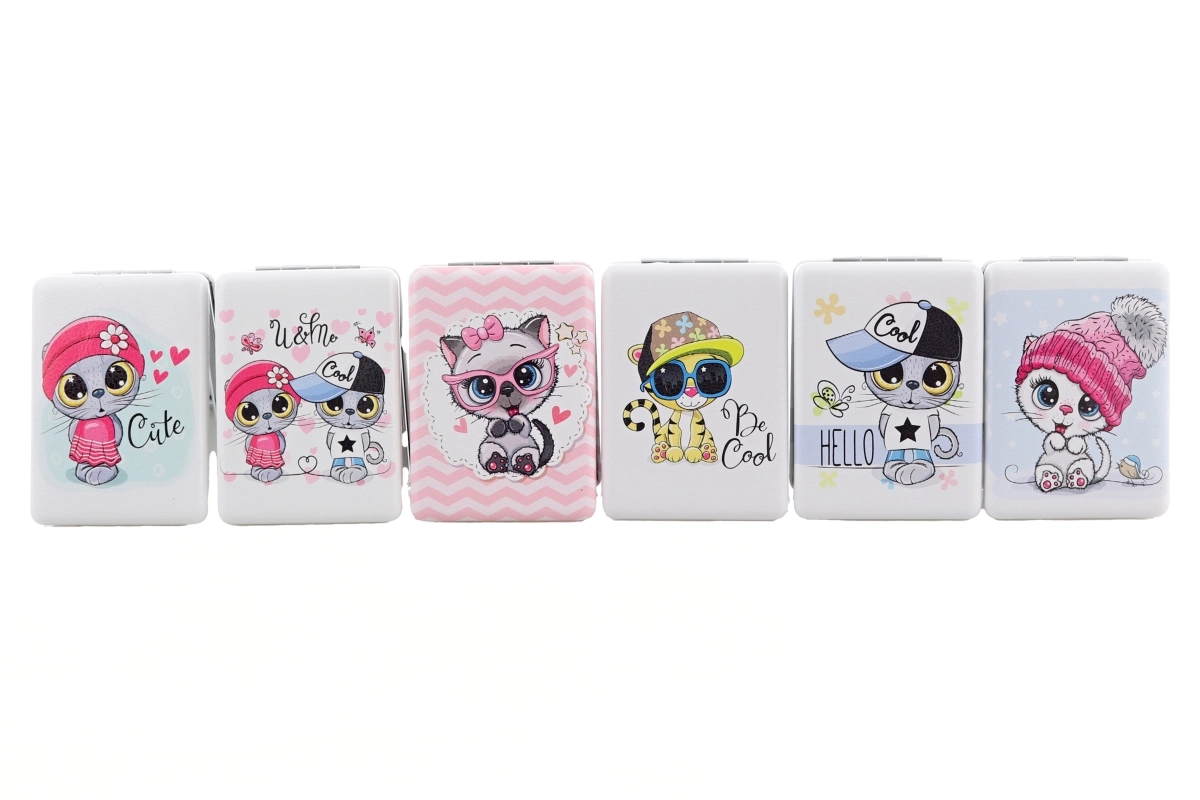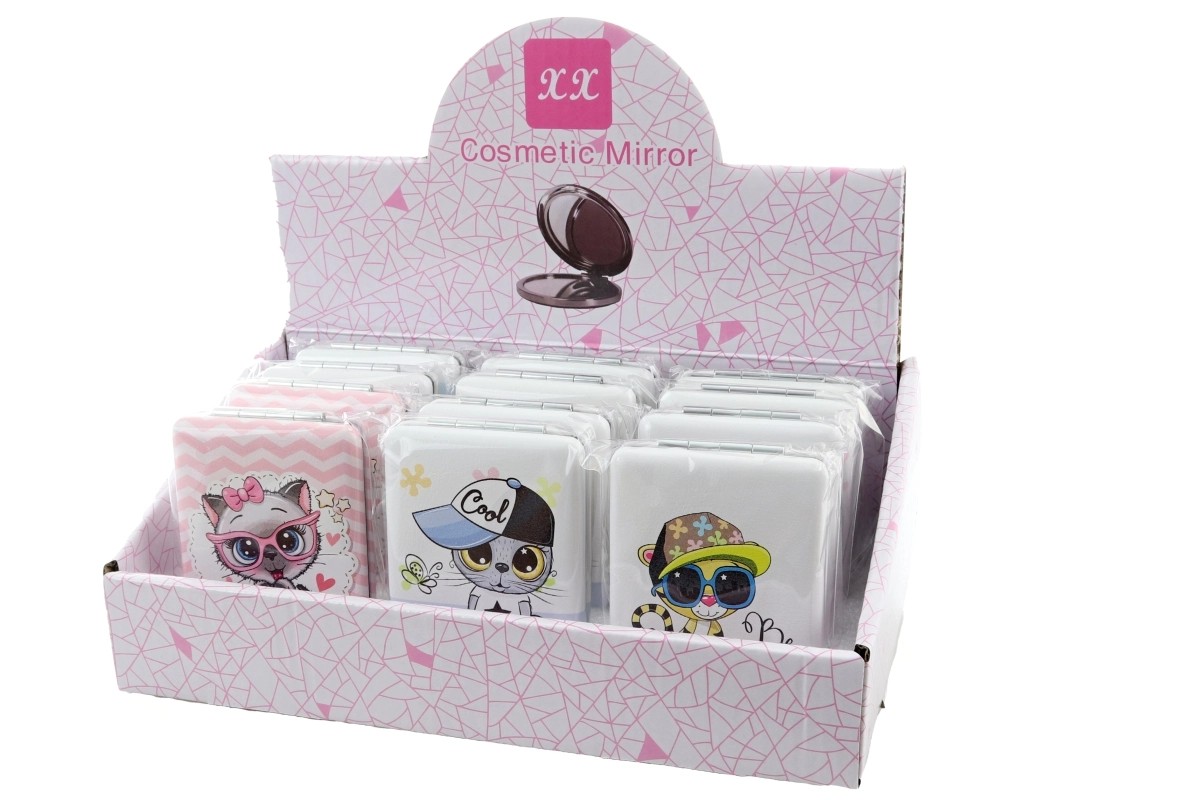 Praktisch rechthoekig zakspiegeltje met vrolijke diermotieven, ideaal voor in handtas of rugzak. Het biedt een spiegel aan beide zijden, heeft compacte afmetingen van 6 × 8,5 × 1,5 cm en is per stuk in een zakje verpakt. Verkrijgbaar in meerdere motieven – levering volgens voorraad. Dit product is geen speelgoed.