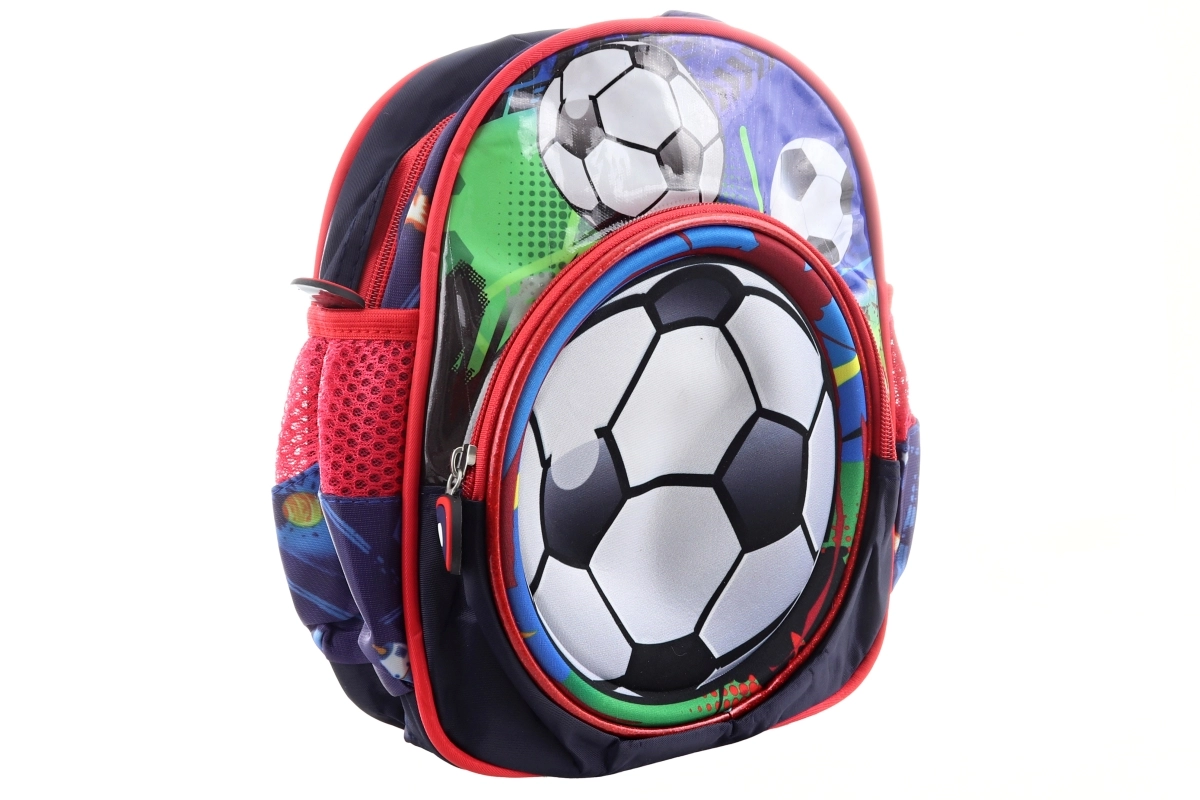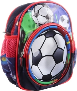Stijlvolle kinder rugzak met voetbalthema, een uitstekende keuze voor kleine sporters. De gevormde voorkant geeft de rugzak een aantrekkelijke look, terwijl het lichte stoffen materiaal comfort biedt bij dagelijks gebruik. Dankzij de compacte afmetingen past er een tussendoortje, fles, etui of kleine speelgoedjes in.