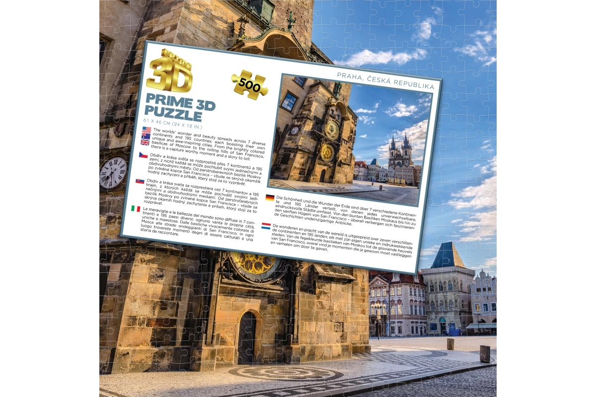 Ontdek de magie van de hoofdstad met deze hoogwaardige 3D-puzzel met het thema Praag. De verpakking bevat 500 stukjes voor plezierig puzzelen en ontspanning. Ideaal voor kinderen en volwassenen vanaf 6 jaar. Afmeting van de voltooide puzzel 61 × 46 cm, compacte verpakking 31 × 20,3 × 5 cm en een geweldig cadeau voor liefhebbers van puzzels en Praag.