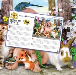 Ontdek het leuke 3D-puzzel met huisdierenmotief, dat logisch denken, fijne motoriek en geduld ontwikkelt. De set bevat 100 stukjes, de afgewerkte afbeelding meet 31 × 23 cm en is ideaal voor kinderen vanaf 5 jaar.