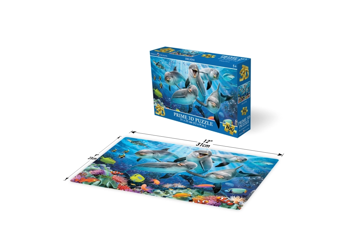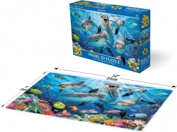 Ontdek plezier dat geduld, concentratie en fijne motoriek stimuleert. Deze 3D-puzzel met dolfijnthema brengt een kleurrijke onderwaterscène tot leven, die dankzij het lenticulair 3D-effect plastisch en dynamisch oogt. De voltooide afbeelding heeft een compact formaat van 31 × 23 cm en is perfect om in de kinderkamer tentoon te stellen.