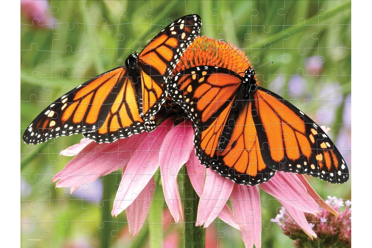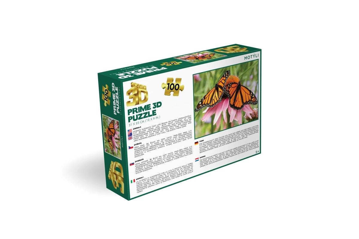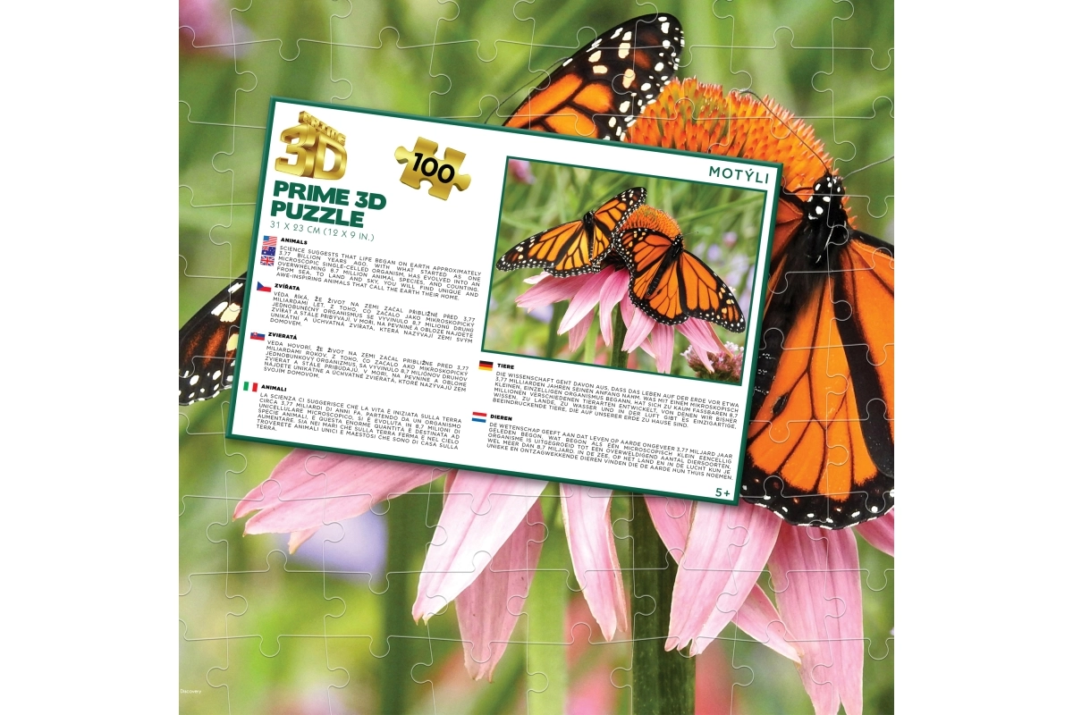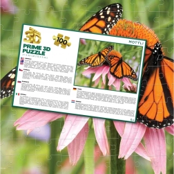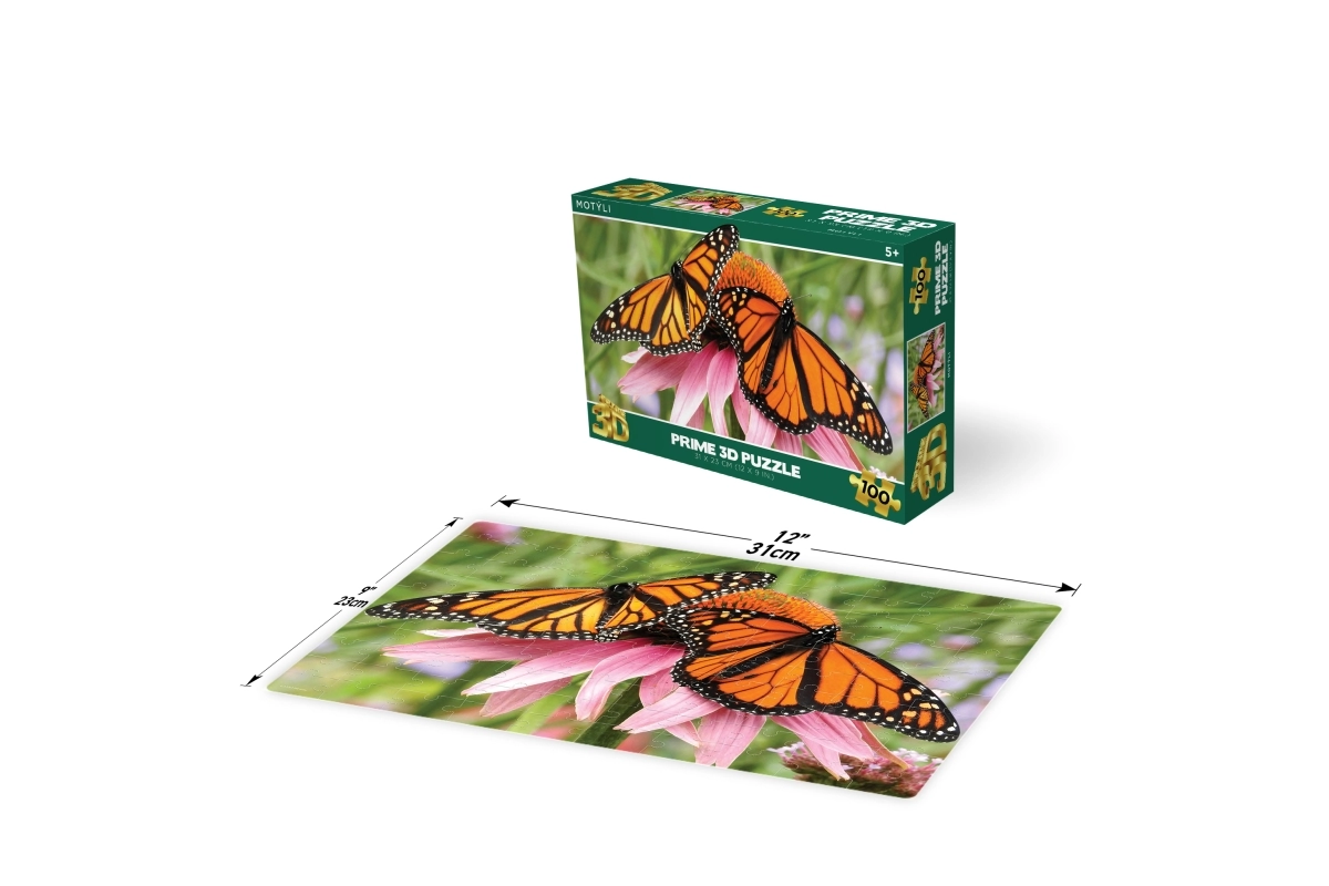 Deze 3D-puzzel met prachtige monarchvlinders biedt een boeiend visueel effect dankzij de lenticulaire technologie, die bij beweging een realistisch diepte-effect creëert. Met 100 stukjes is hij perfect voor beginners en licht gevorderde puzzelaars en biedt hij een prettige uitdaging én plezier.