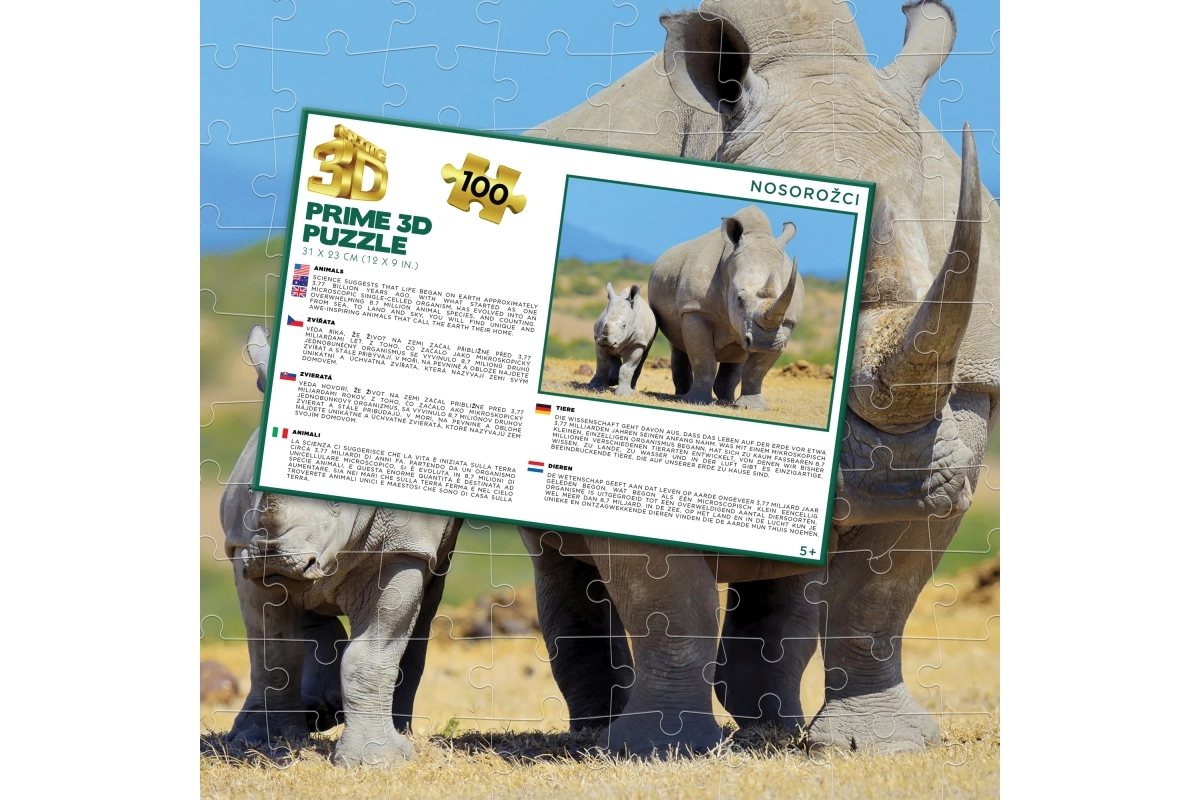 Ontdek een leuk en leerzaam 3D-puzzel met een neushoornenthema voor kinderen vanaf 5 jaar. De set bevat 100 stukjes en na het leggen ontstaat een indrukwekkend beeld van 31 × 23 cm. Ideaal voor de ontwikkeling van fijne motoriek, geduld en logisch denken.