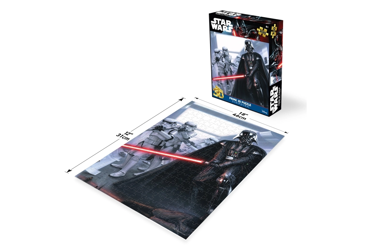 Stap in de wereld van STAR WARS met een spectaculaire 3D-puzzel die na het leggen een indrukwekkend lenticulaire afbeelding met diepte en perspectief vormt. De doos bevat 300 stevige stukjes en na voltooiing ontstaat een afbeelding van 46 × 31 cm – perfect om tentoon te stellen in de kinderkamer of speelhoek.