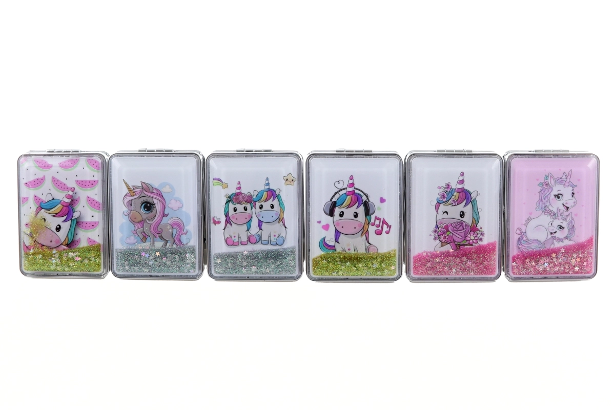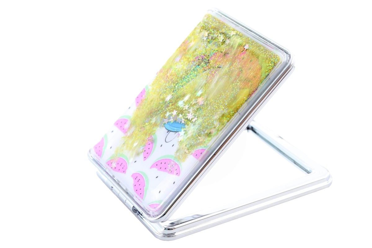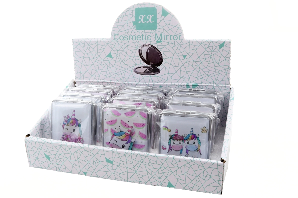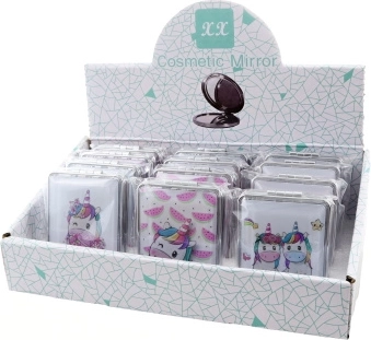 Stijlvol zakspiegeltje met vrolijke eenhoorns en een voorkant met bewegende glitters. Dankzij het dubbele spiegeltje en de compacte afmetingen is het een praktische accessoire voor in je tas. Beschikbaar in meerdere designs – levering afhankelijk van voorraad.