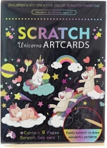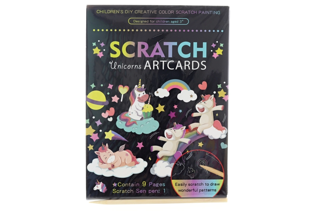 Deze creatieve set biedt leuk krassen met het populaire eenhoornthema. Met het meegeleverde houten hulpmiddel onthul je voorzichtig de kleurrijke lagen en creëer je indrukwekkende afbeeldingen die geschikt zijn om tentoon te stellen of cadeau te geven.