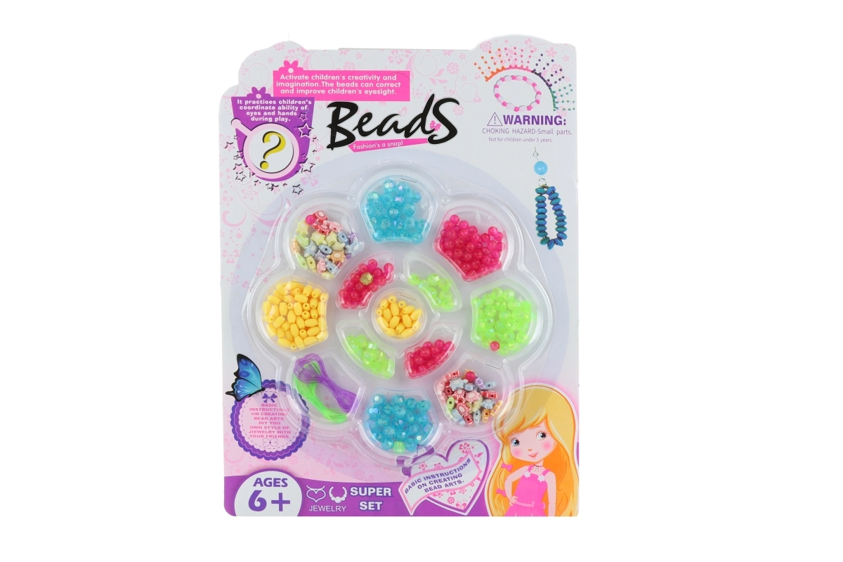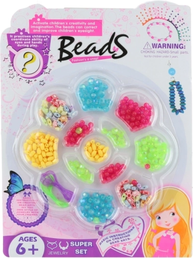 Deze creatieve set bevat gekleurde kunststof kralen in verschillende vormen en twee rijgsnoeren, waarmee kinderen hun eigen armbanden, kettingen of hangers kunnen maken. Een geweldige keuze voor het ontwikkelen van fijne motoriek, fantasie en geduld. Geschikt voor kinderen vanaf 6 jaar.