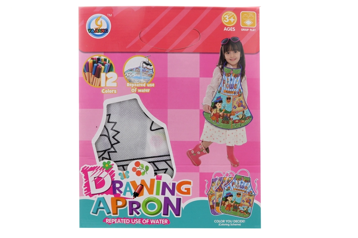 Ontdek een leuke manier van creëren met het kleurvoorschort met een motief van een bloeiende tuin. Dankzij het speciale oppervlak kan het voorschort steeds opnieuw worden ingekleurd, zodat kinderen keer op keer met kleuren kunnen experimenteren. Een praktische hulp die kleding beschermt tijdens schilderen, koken en schoolprojecten.