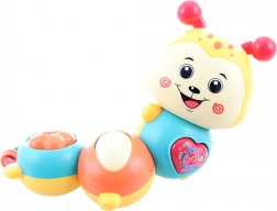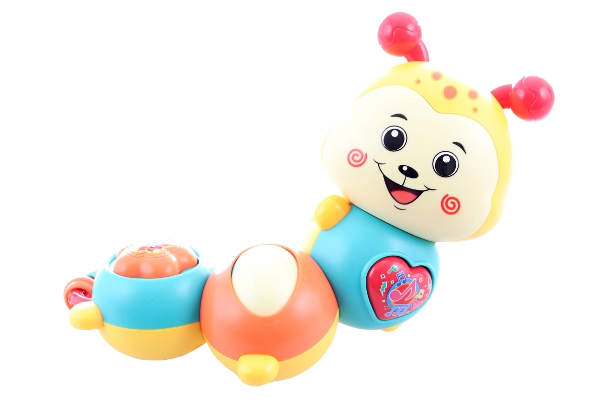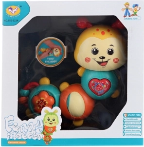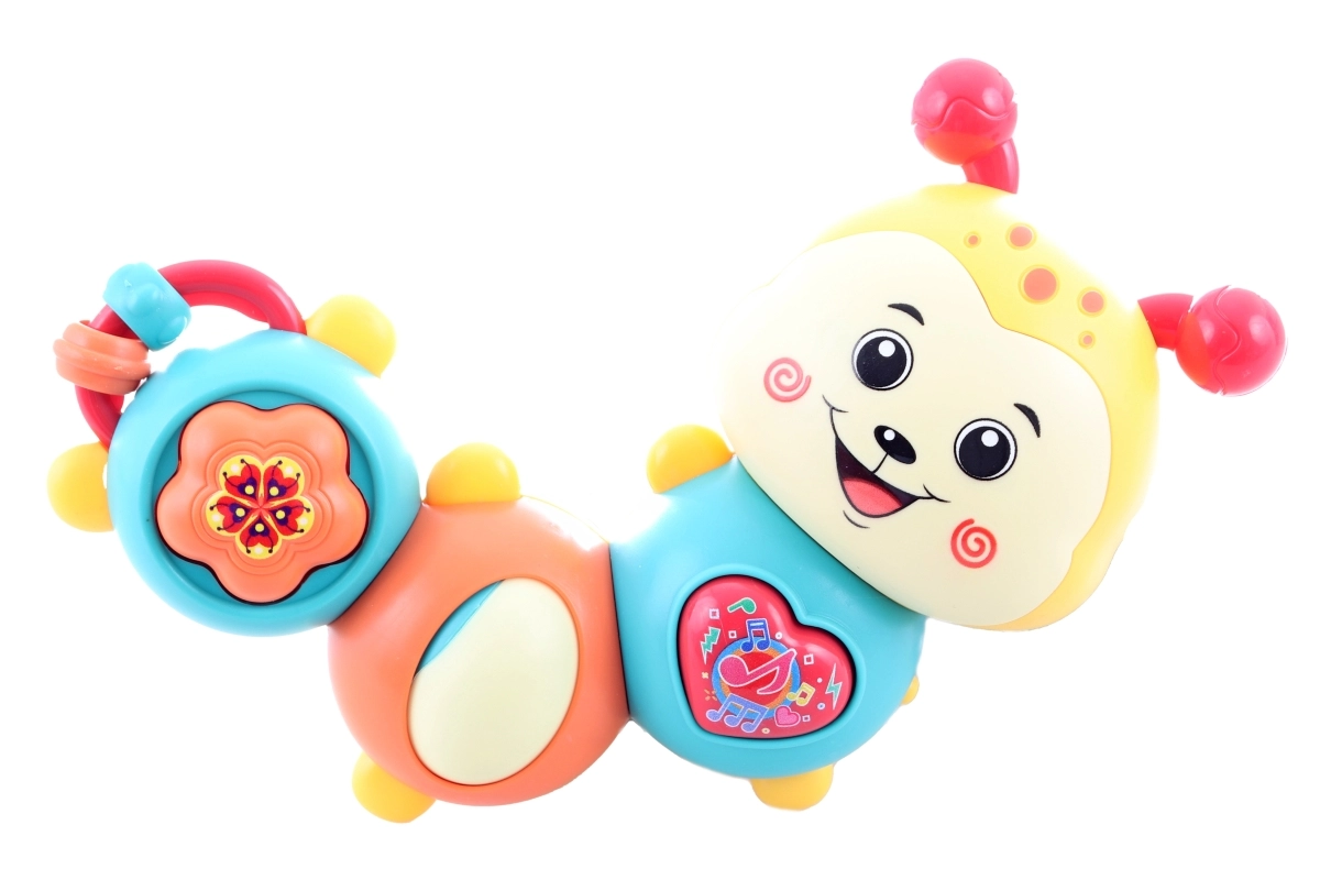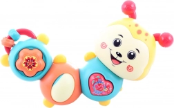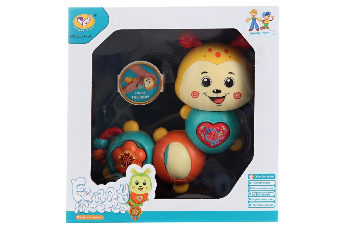 Deze kleurrijke rups spreekt kinderen aan met zijn vrolijke uiterlijk, gemakkelijke grip en interactieve functies. Na het plaatsen van batterijen speelt hij melodieën en geluiden af die motiveren om te ontdekken en het gehoor te oefenen. De draaibare lichaamsdelen bevorderen de fijne motoriek en hand-oogcoördinatie.