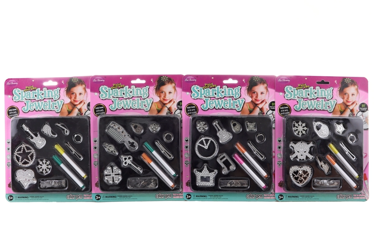 Ontdek plezier en creativiteit met deze creatieve set voor het schilderen van sieraden, met 6 sieraden, 2 verfkleuren en praktische accessoires waaronder koordjes. Ideaal voor kinderen vanaf 3 jaar, gemaakt van duurzaam plastic, verpakt op kaart voor gemakkelijk opbergen.