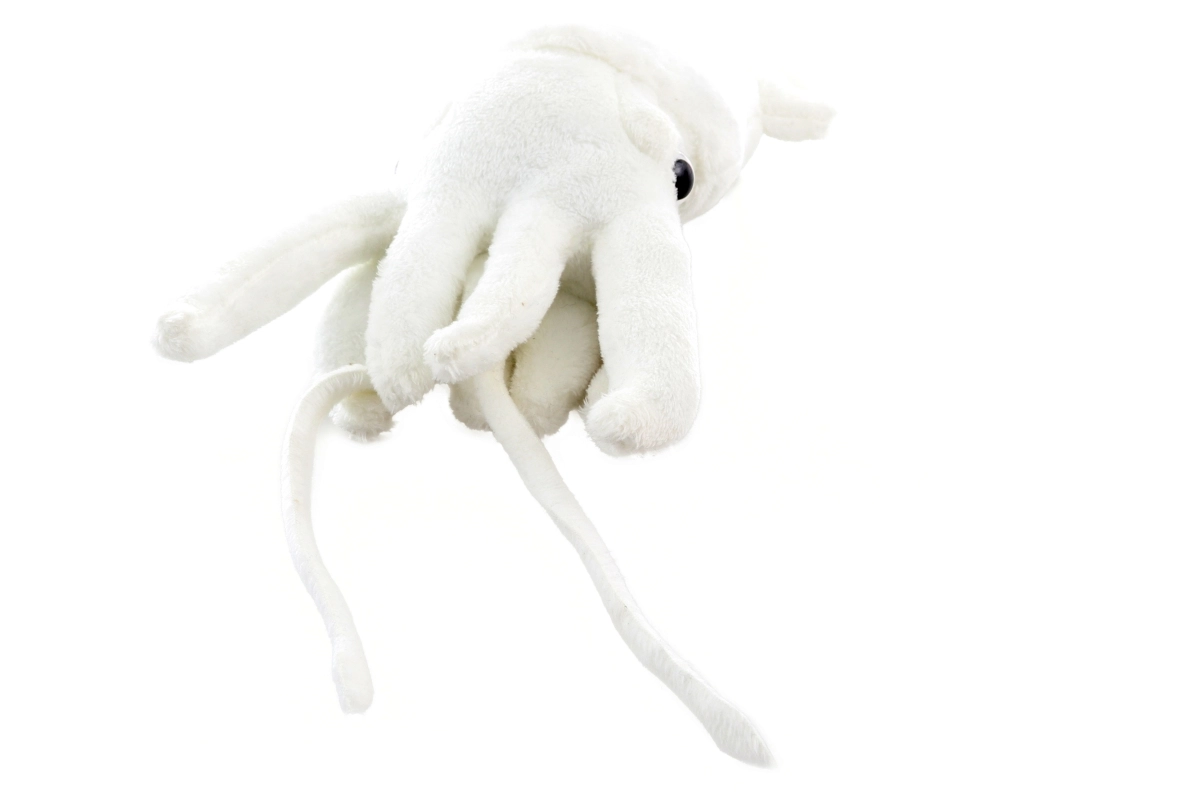 Deze witte pluchen pijlinktvis maakt zowel kleine als grote liefhebbers van zeedieren blij. De realistische vorm met meerdere tentakels en een opvallend oog prikkelt de fantasie en ondersteunt creatief, fantasierijk spel. Dankzij het zachte, aaibare materiaal is hij perfect als knuffel voor in bed en als lieve decoratie voor de kinderkamer.