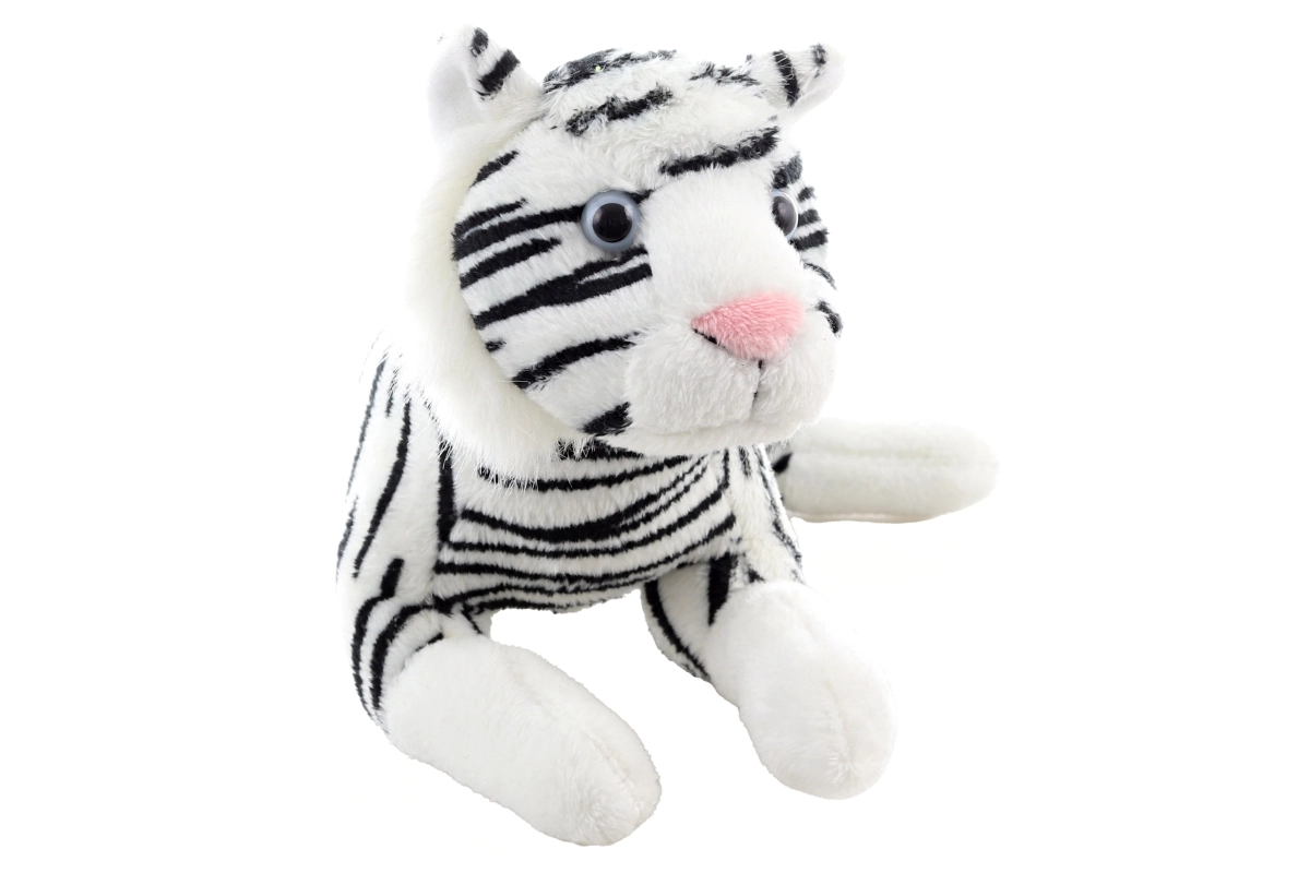 Deze schattige pluchen witte tijger van 20 cm is de ideale knuffel- en speelkameraad vanaf de geboorte. Hij heeft superzachte, fluweelachtige haartjes, realistische strepen en een schattig roze snuitje. Perfect als knuffel voor in bed, als decoratie in de kinderkamer of als cadeau voor kleine dierenliefhebbers.