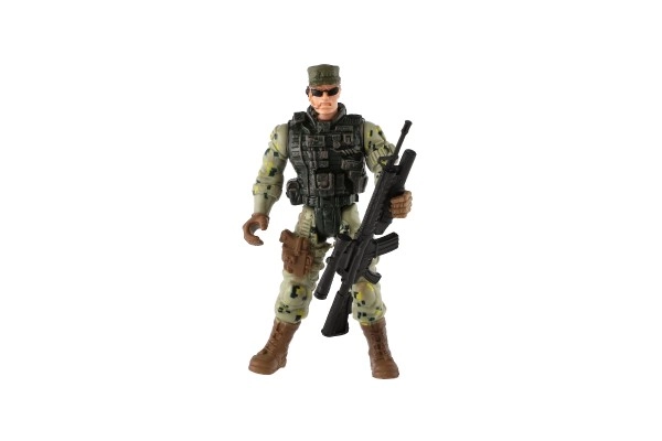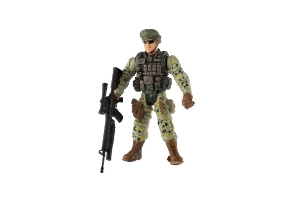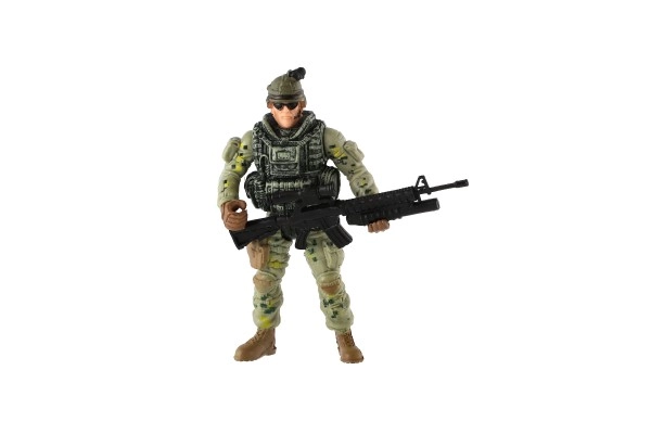 Ontdek het speelplezier met een gedetailleerde militaire figuur van 10 cm, ideaal voor kleine en grote fans van legeravonturen. De figuren hebben bewegende ledematen, realistische camouflage-afwerking en worden geleverd met wapen en tactische uitrusting. Elk stuk zit in een transparant plastic doosje voor eenvoudig uitstallen en verzamelen. Geschikt voor kinderen vanaf 3 jaar.