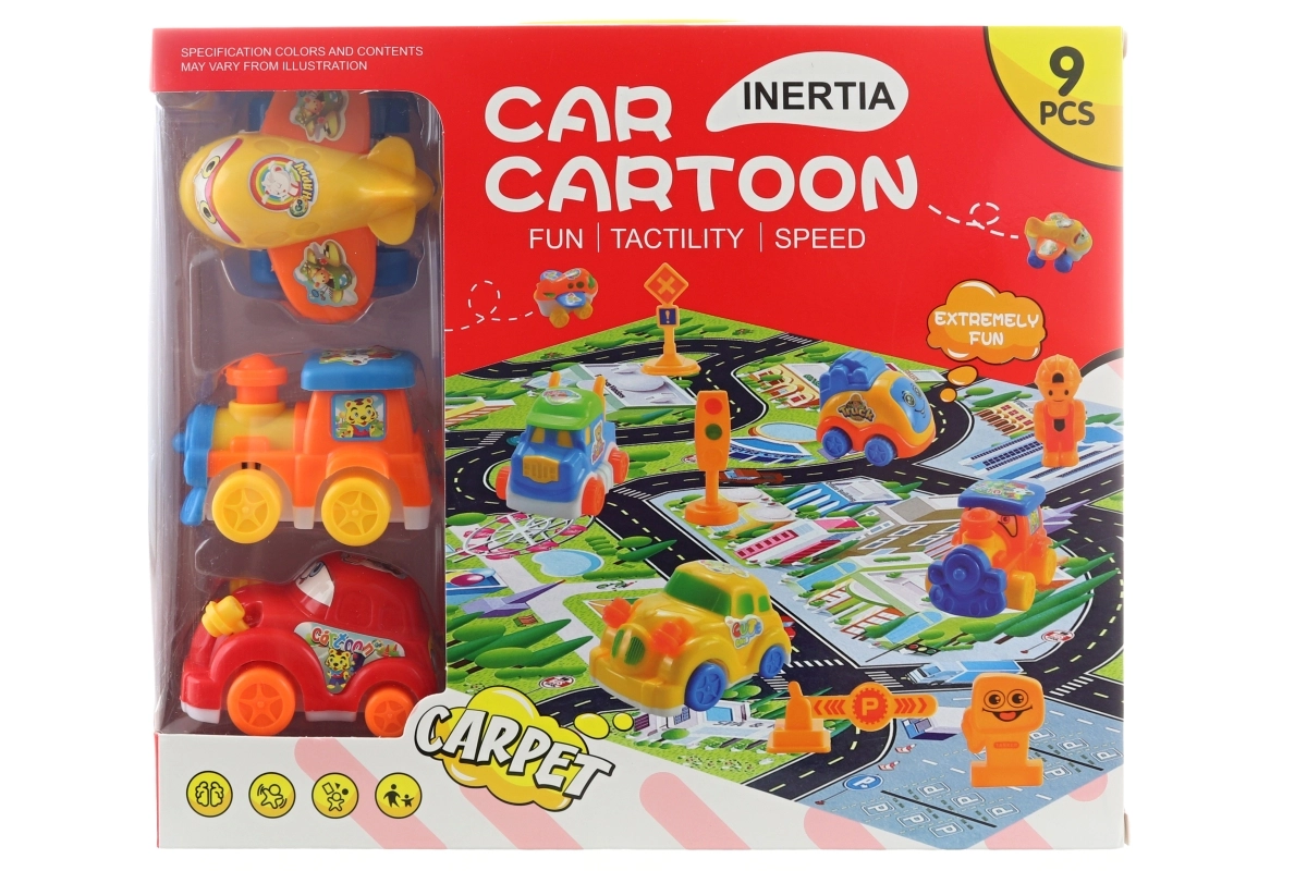 Deze set biedt kinderen uren speelplezier en stimuleert de fantasie. Het praktische speelkleed met wegen dient als speelondergrond, terwijl de drie meegeleverde voertuigen van ca. 8 cm perfect in kinderhanden passen. Dankzij de stevige kunststof zijn de autootjes duurzaam en klaar voor dagelijkse races.