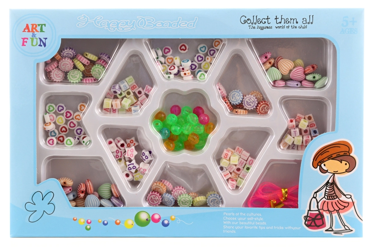Ontdek een leuke, creatieve kralenset waarmee kinderen hun eigen sieraden en accessoires kunnen maken. In het doosje vind je gekleurde plastic kralen in diverse vormen en maten en ook een rijgkoord, zodat je meteen kunt beginnen met creëren. Het doosje is compact en overzichtelijk, wat het opbergen en meenemen gemakkelijk maakt.