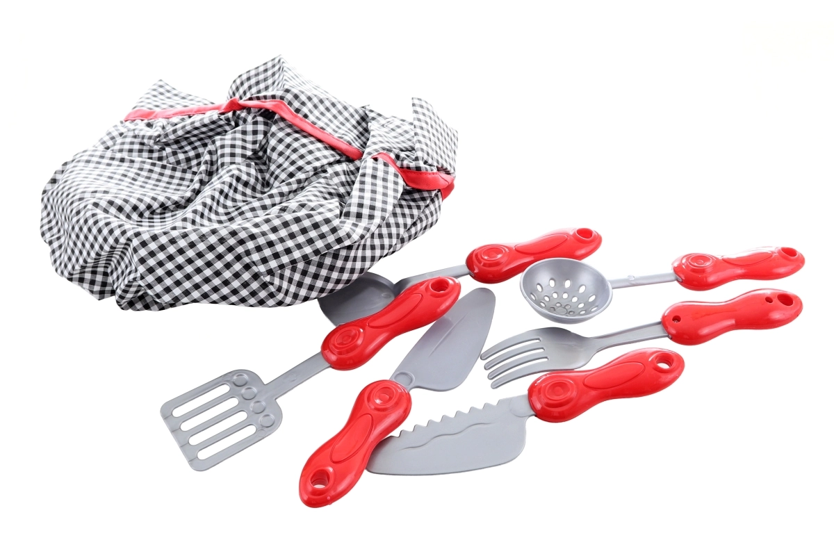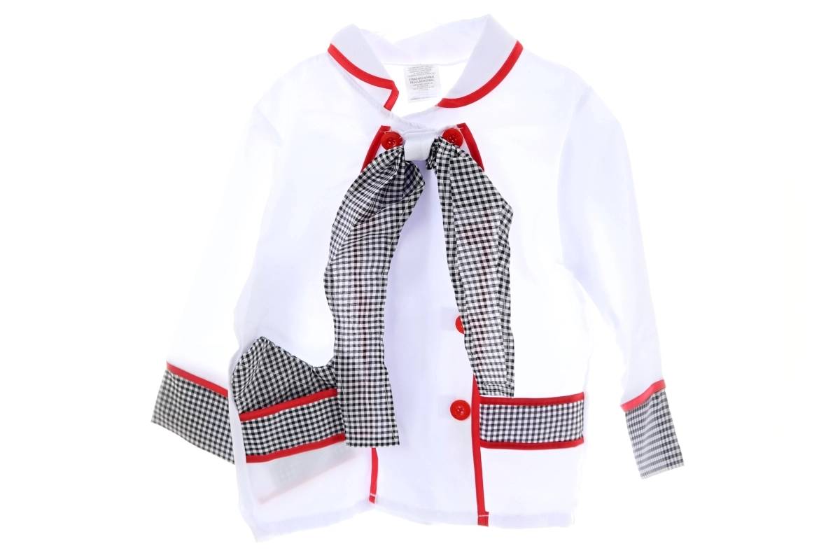 De kinder-koksoutfit stimuleert fantasie, creativiteit en fijne motoriek. De set bevat alles voor realistisch kookspel – van een stijlvol jasje met knopen tot praktische accessoires, waaronder een ovenhandschoen, koksmuts en kunststof keukengerei.