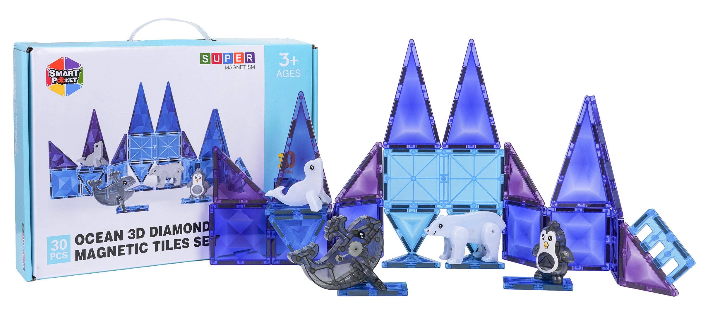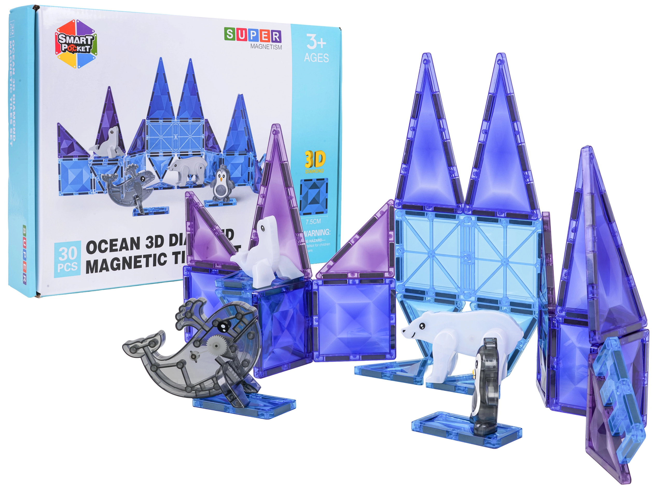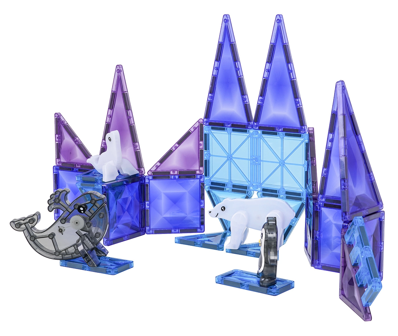 De magnetische bouwset Ice Snow is ontworpen voor kinderen vanaf 3 jaar. Halftransparante onderdelen in koele kleuren worden gestapeld tot torens, muren en ijspaleizen, terwijl de magnetische verbindingen de vorm houden en de constructies stabiel blijven. Er zijn ook schattige figuurtjes inbegrepen – een zeehond, pinguïn, dolfijn en ijsbeer – die elk spel tot leven brengen.