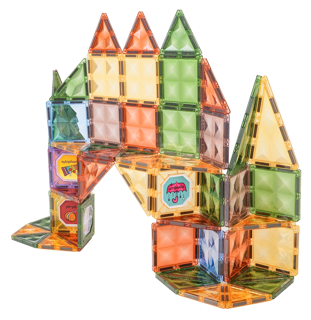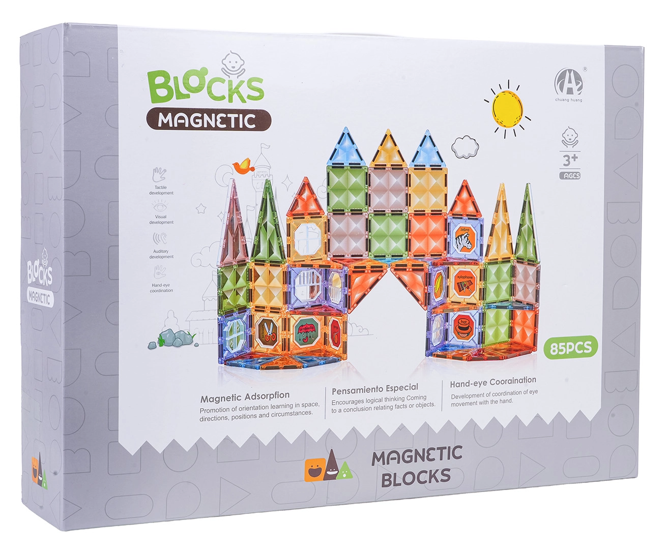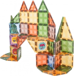 Deze rijk uitgeruste magnetische bouwset bevat transparante, kleurrijke vierkanten en driehoeken die veilig aan de randen met elkaar verbinden. Kinderen kunnen kastelen, bogen en geometrische bouwwerken maken en ondertussen hun fijne motoriek en concentratie oefenen. De onderdelen zijn van hoogwaardig, duurzaam plastic en de magneten zorgen voor een stevige verbinding onder verschillende hoeken.