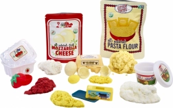 De werkende pasta-extruder en accessoires laten kinderen verschillende vormen “noedels” en ravioli persen, “deeg” uitrollen en een authentiek Italiaans diner bereiden.