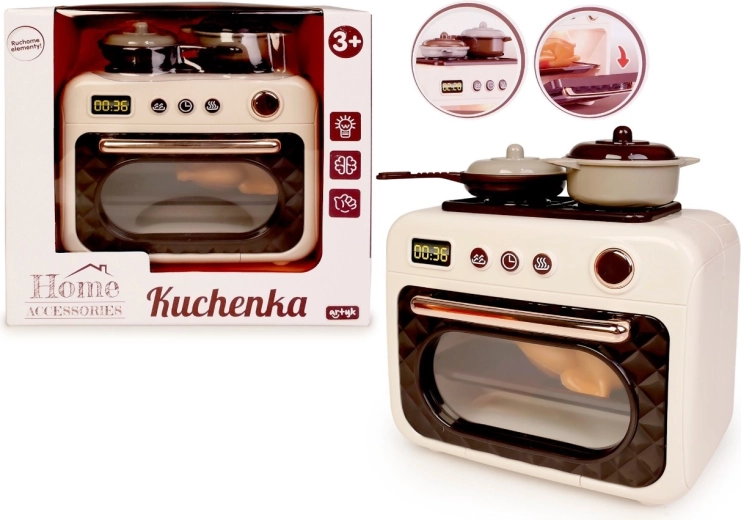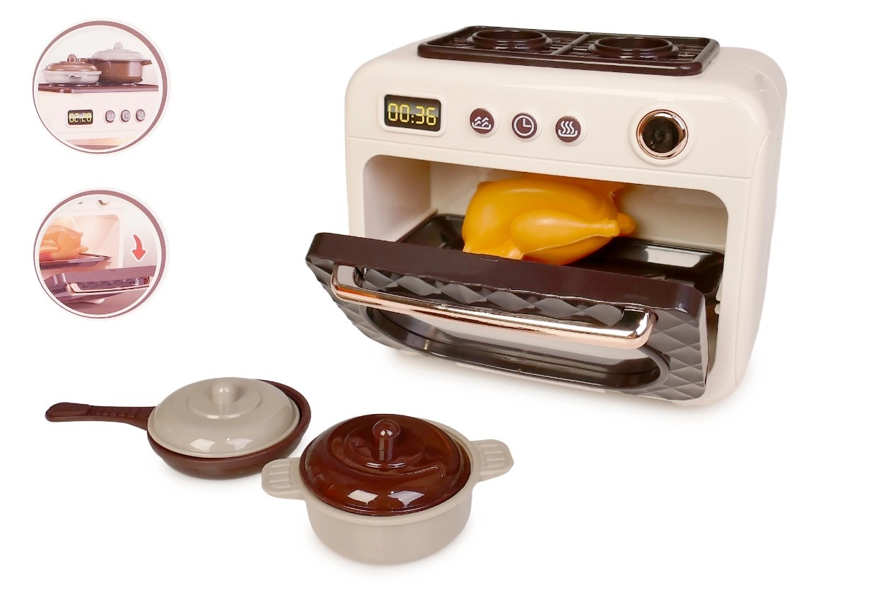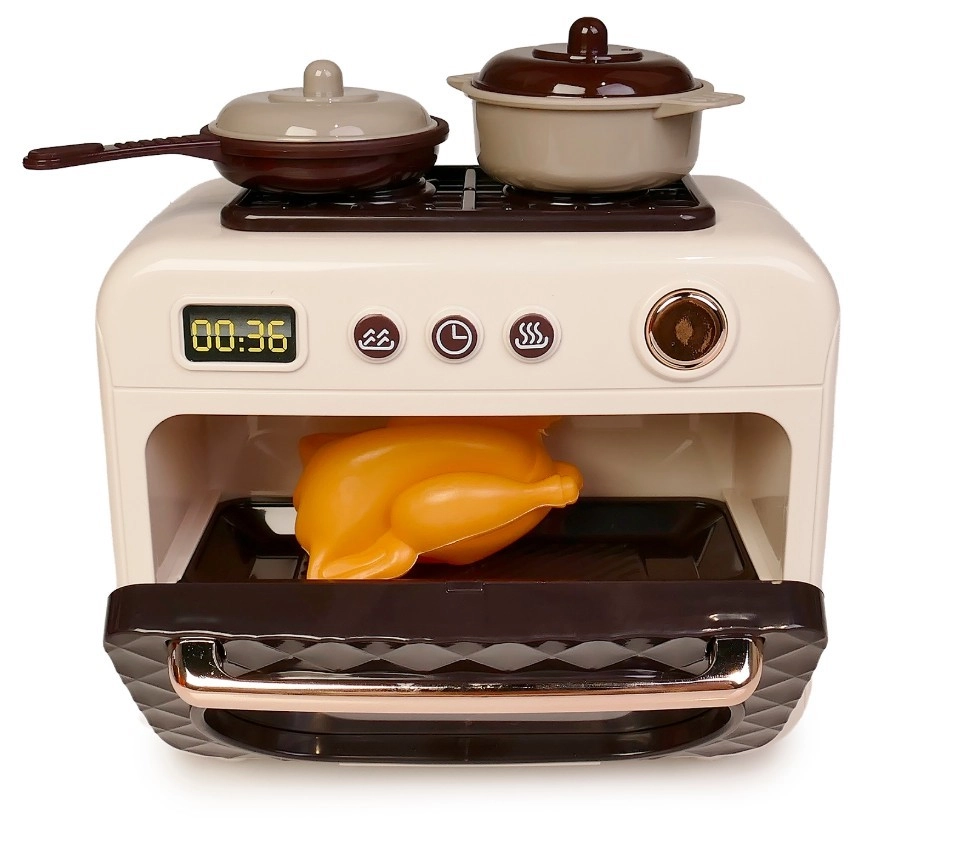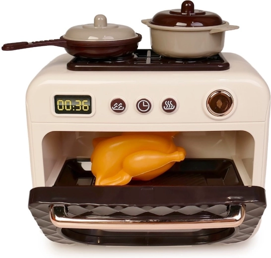 Ontdek een realistische kinderoven die iedere kleine kok blij maakt. Bij het indrukken van de knop gaat de oven aan en klinkt er een vrolijke melodie, waardoor het spel nog boeiender en leuker wordt.