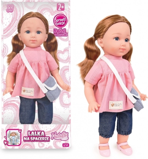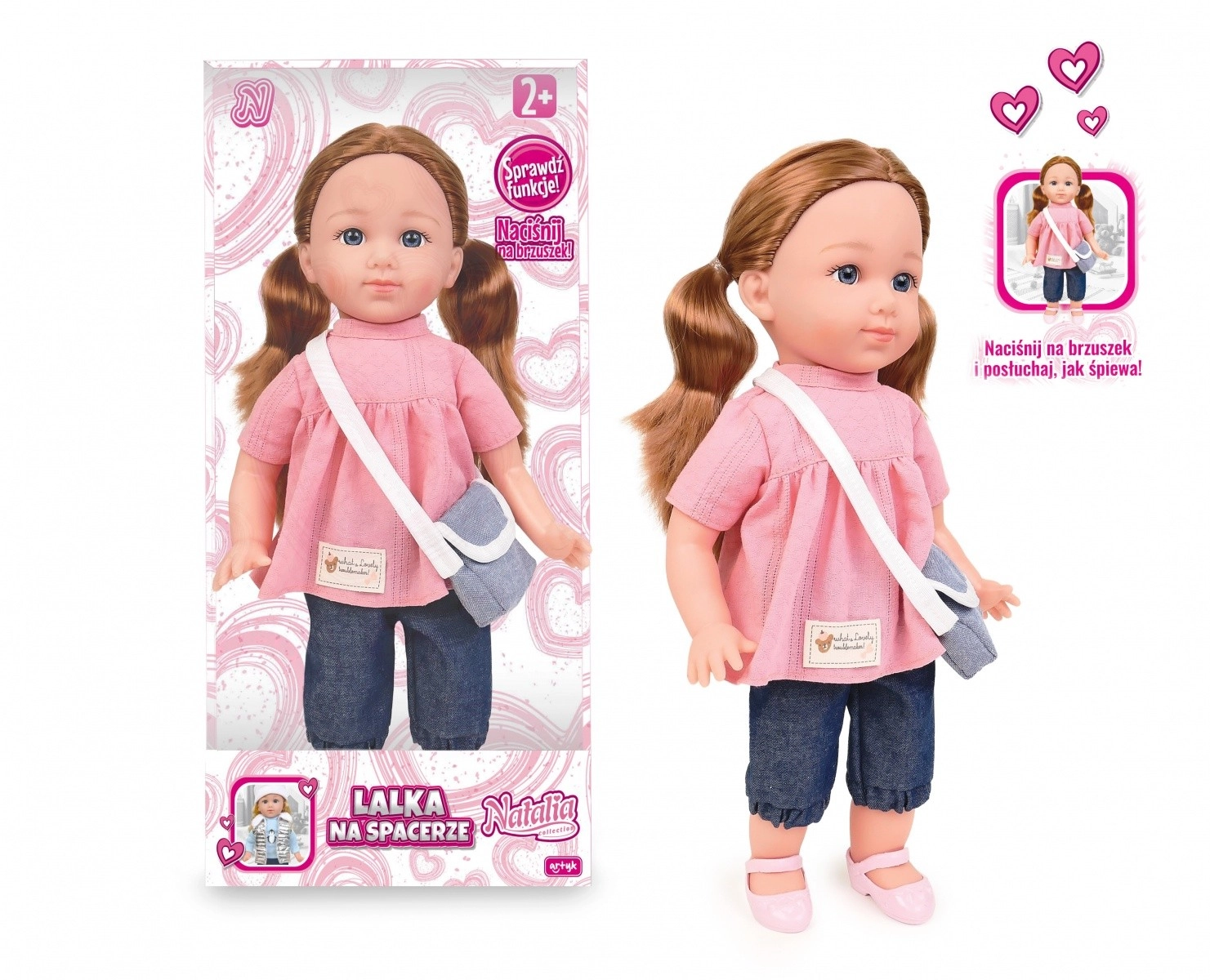 De pop Natalia in een roze tuniek en modieuze broek biedt kinderen veel plezier en leermomenten. Bij het indrukken van haar buikje spreekt ze Poolse zinnetjes en zingt ze twee liedjes, wat het auditieve waarnemen en het natuurlijke nadoen van volwassenen stimuleert. Dankzij de hoogwaardige afwerking, zachte gelaatskenmerken en beweegbare ledematen is ze een geweldige speelkameraad voor elke dag.
