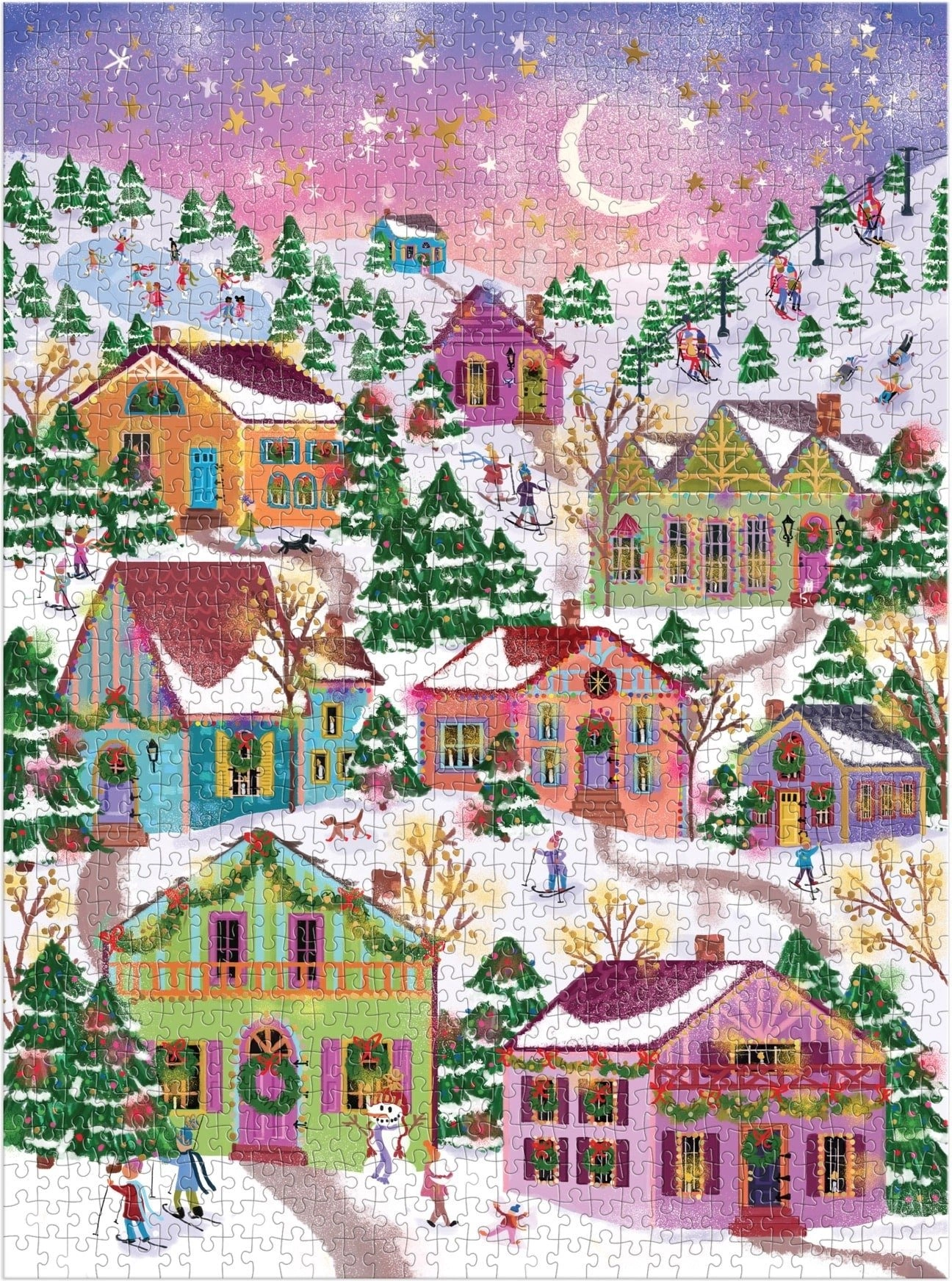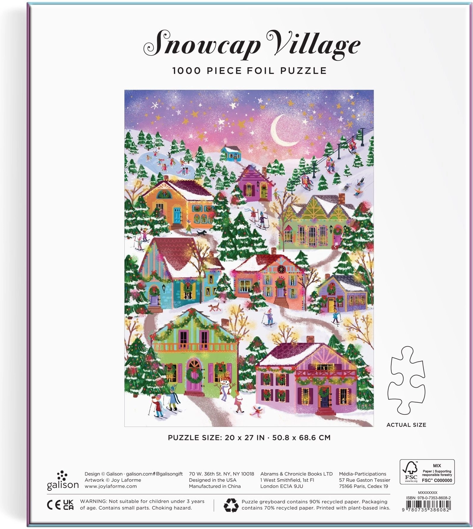 Deze stijlvolle puzzel met het motief van een besneeuwd dorp is ideaal voor winteravonden en als cadeau voor puzzelliefhebbers. Het metallic effect wekt de indruk van goud, zilver en andere glanzende metalen, waardoor de afgewerkte afbeelding echt opvalt.