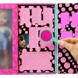 Kraak codes, open vakjes en ontdek stap voor stap de outfit, schoenen, sieraden en de geheime identiteit van de pop.