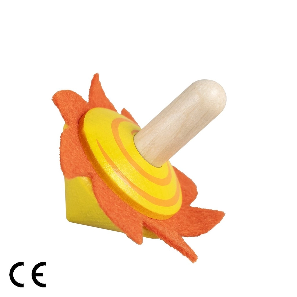 De traditionele houten tol met een zonnemotiefje bezorgt elk kind plezier en ontwikkelt tegelijk belangrijke vaardigheden. Dankzij het gemakkelijke draaien stimuleert het de hand-oogcoördinatie, fijne motoriek en logisch denken. De hoogwaardige afwerking van hout en vilt en het voldoen aan de Europese veiligheidsnormen maken het een ideaal klein cadeau voor kinderen vanaf 3 jaar.