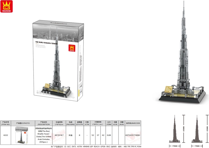 Ontdek de iconische silhouet van de wolkenkrabber BURJ KHALIFA in een bouwset voor kinderen vanaf 6 jaar. De set bevat 555 stukjes van hoogwaardige kunststof, biedt een stevige en duurzame constructie en is een geweldig cadeau voor jonge én volwassen liefhebbers van architectuur.