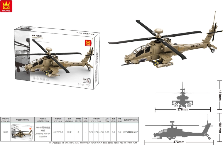 De bouwset van de militaire helikopter biedt kinderen uren creatieve fun en ontwikkelt hun fijne motoriek, logisch denken en geduld. Van 255 stevige kunststof onderdelen bouw je een aantrekkelijk model met realistische details dat in elke kinderscollectie zal opvallen.