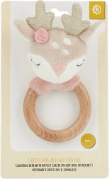 Deze multifunctionele motorische speelgoedspeeltje combineert drie favoriete functies – rammelaar, grijpspeeltje en bijtring. De houten ring is glad, prettig in de hand en geschikt om op te bijten, terwijl het zachte pluchen hertjeskopje een kalmerende tactiele ervaring biedt. De zachte rammel wekt op natuurlijke wijze nieuwsgierigheid en bevordert de oog-handcoördinatie.