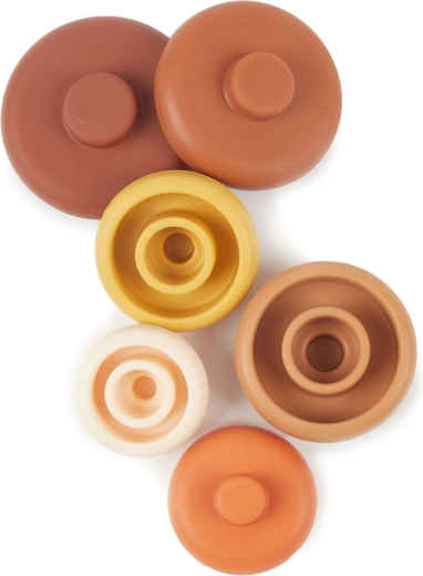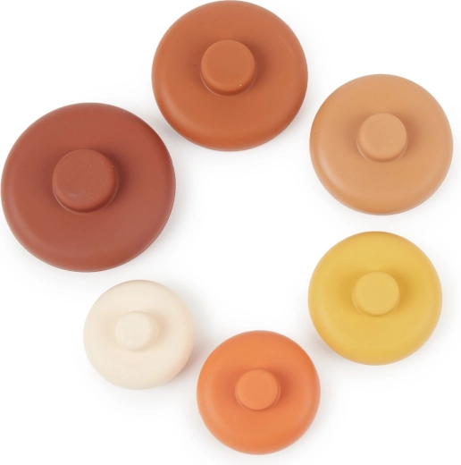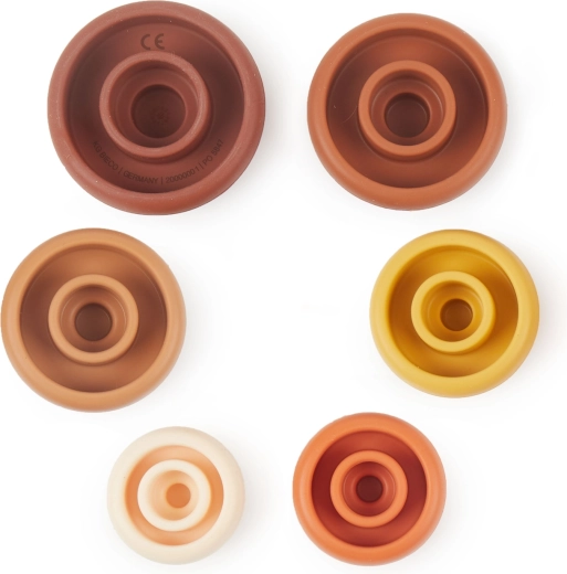 Deze 6-delige siliconen stapeltoren Bieco Chocolate Bliss biedt kinderen eindeloze mogelijkheden om te bouwen, sorteren en ontdekken. Het zachte maar stevige materiaal voelt prettig aan, is antislip en gemakkelijk schoon te maken – ideaal voor dagelijks spelen thuis, buiten en in het water.