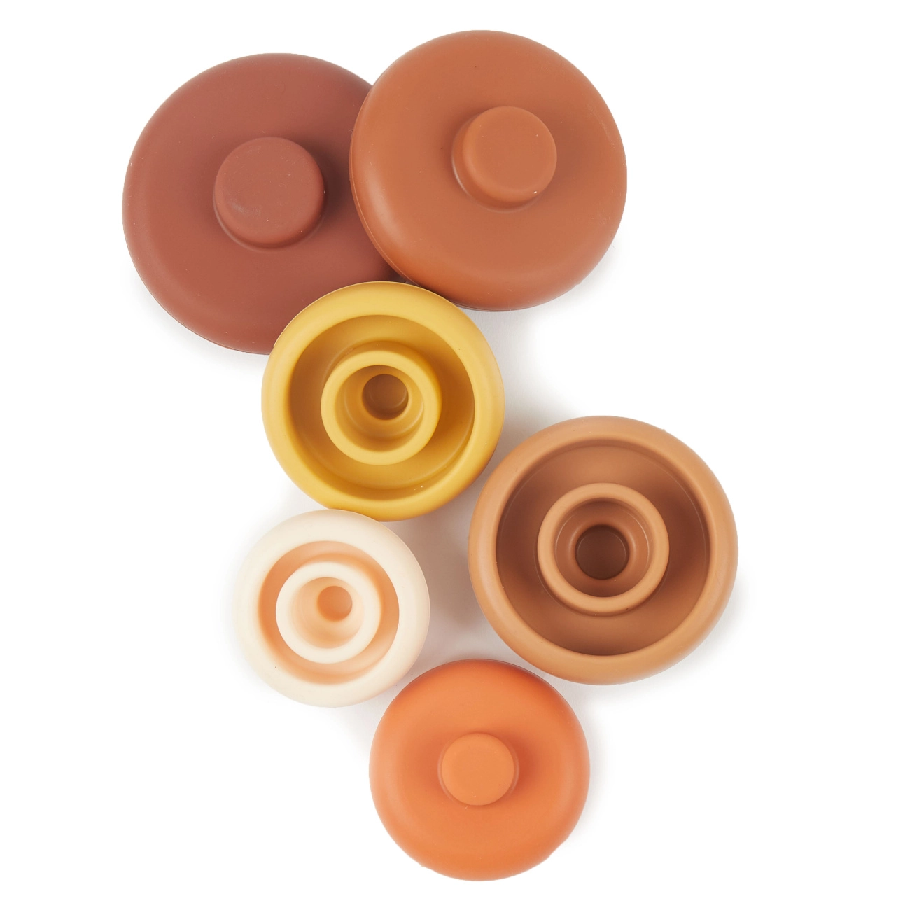 Ontdek de speelse stapeltoren van zachte siliconen, ideaal voor kinderen vanaf 12 maanden. De set ondersteunt fijne motoriek, oog-handcoördinatie en kleuren leren. De onderdelen zijn van 100% veilige siliconen, makkelijk te reinigen en ook geweldig voor in bad.