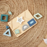 De chunky houten stukken liggen prettig in de hand en helpen de oog-handcoördinatie en de grijpfunctie van kleine handjes te ontwikkelen.