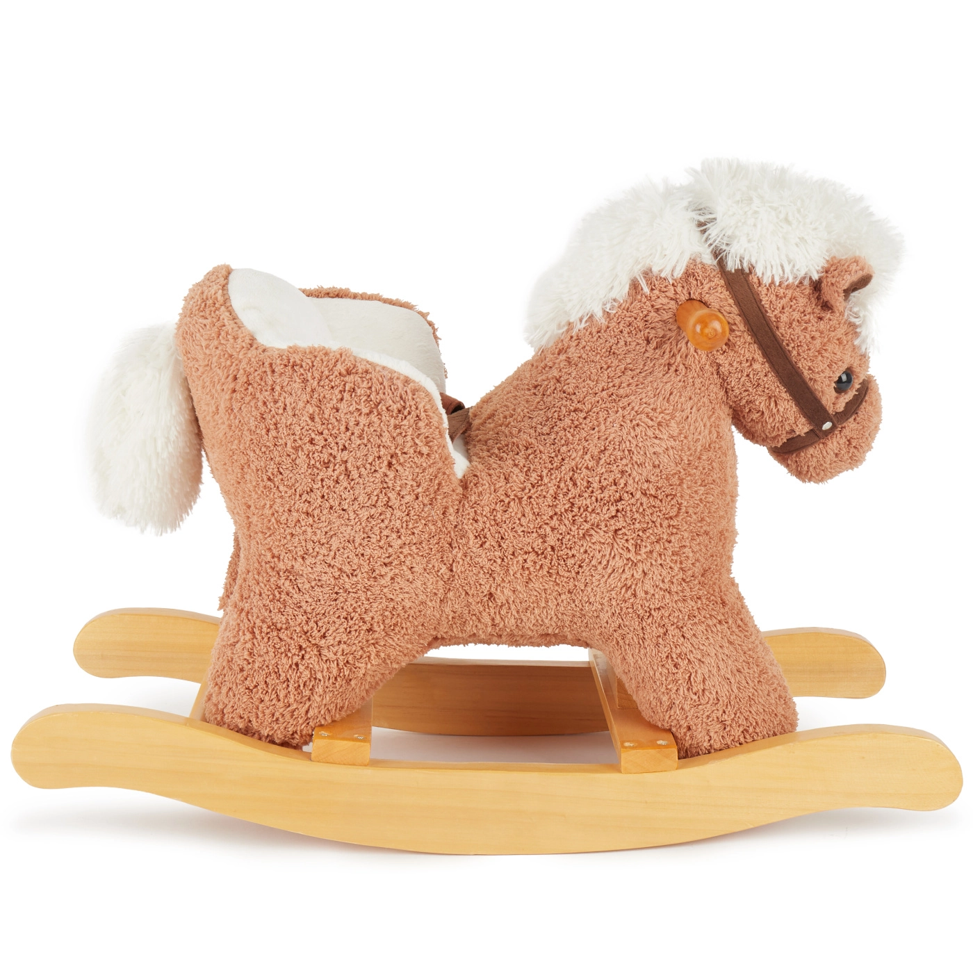Schattig schommelpaard van Bieco voor kinderen vanaf 9 maanden met een zachte pluche afwerking, een stevige houten constructie en een comfortabele gevoerde zitting met veiligheidsgordel. Het stimuleert de ontwikkeling van motoriek en evenwicht en zorgt voor veilig speelplezier dankzij de lage zithoogte en kantelbeveiliging.