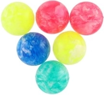 Een stuiterbal is een balletje dat mooi van de grond terugkaatst. Deze set van 6 kleurrijke, gemarmerde ballen is bijzonder. Probeer alle zes stuiterballen tegelijk te laten vallen! Of deel ze met je vrienden!