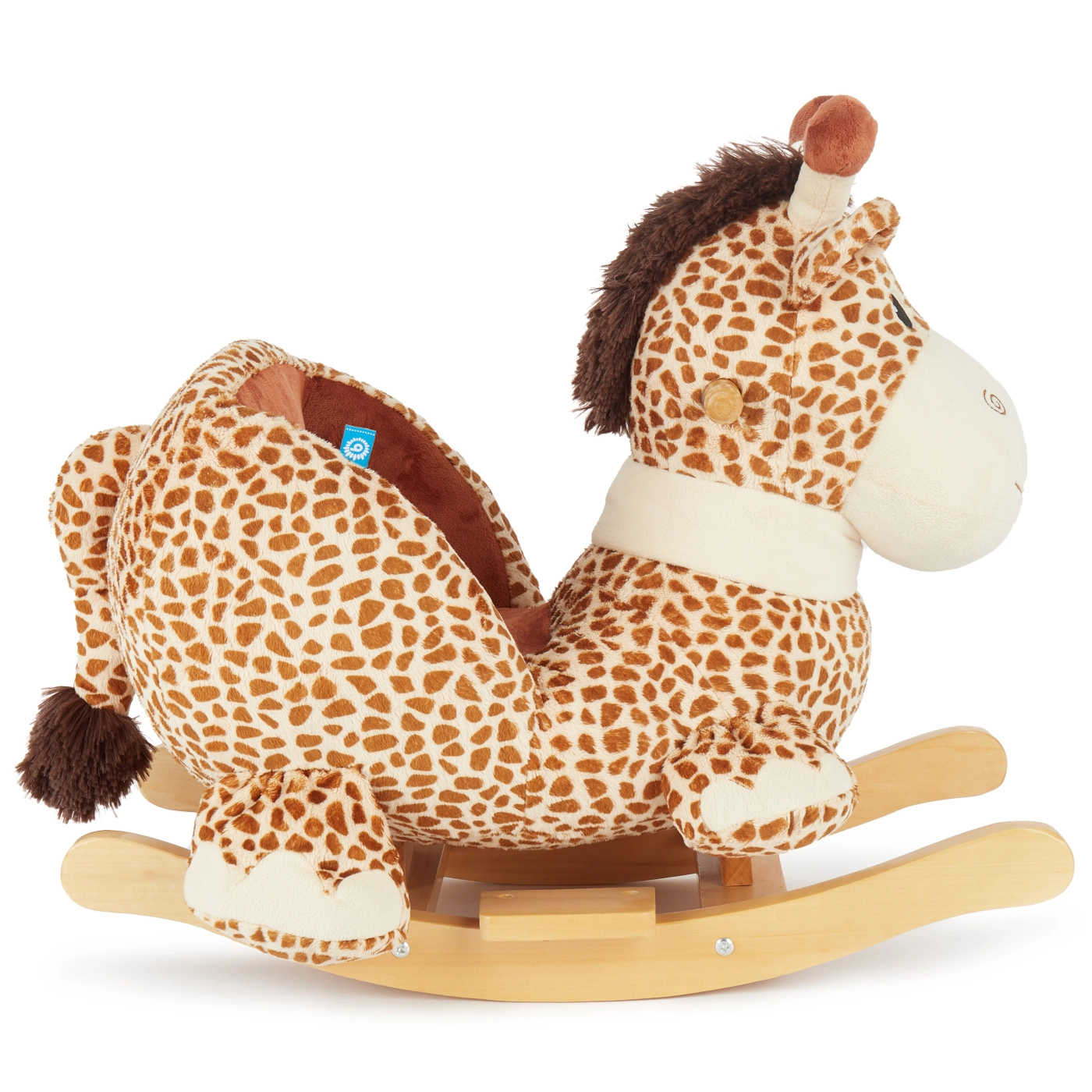 Aangenaam, zacht aanvoelende pluche met een schattige giraffenprint nodigt uit tot knuffelen en maakt van de schommel een favoriet maatje om mee te spelen en te ontspannen.