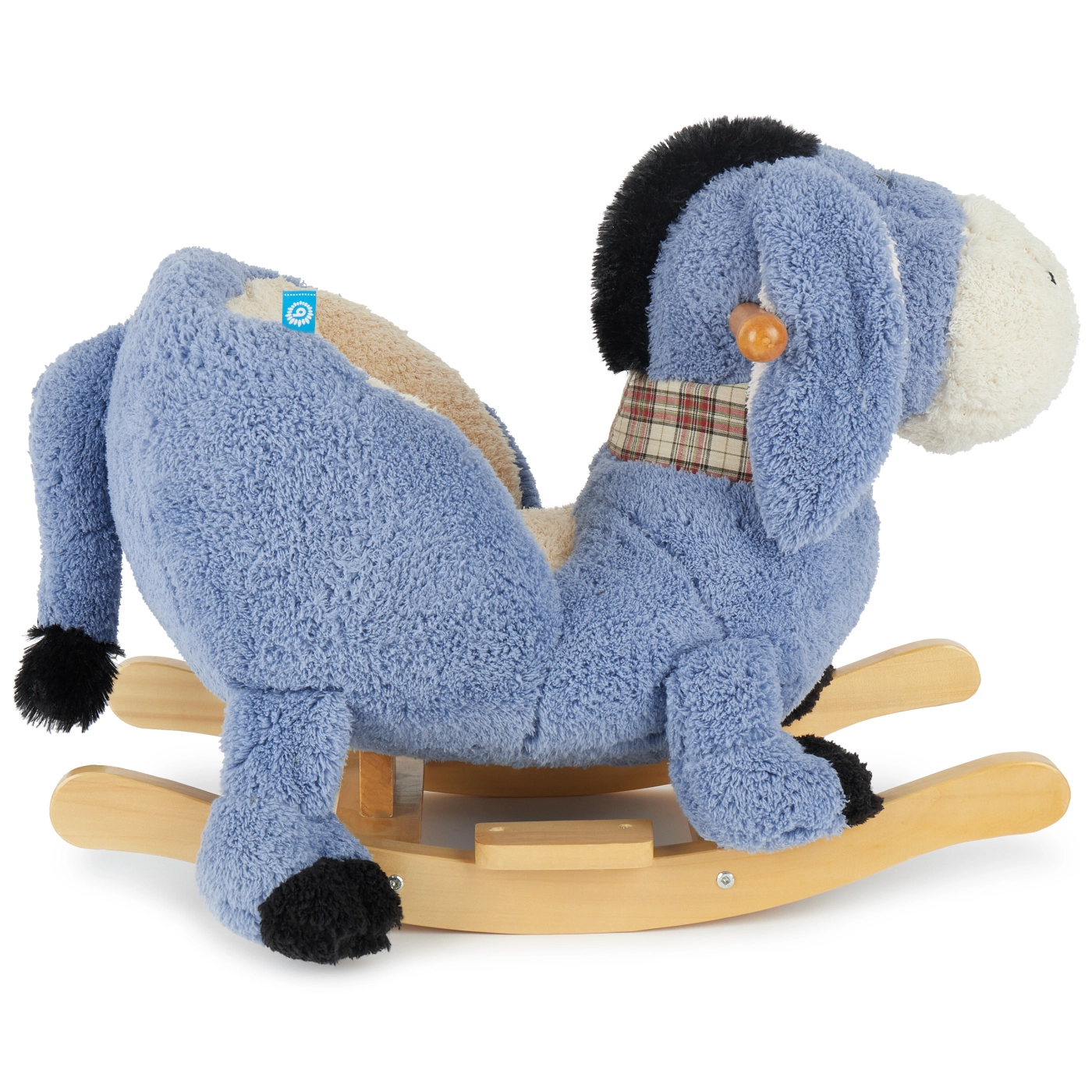 Deze schommelende ezel is het ideale eerste speeltje voor actieve peuters. Hij combineert comfortabel pluche met een stevige houten basis en dankzij de lage zithoogte (ca. 14 cm) is op- en afstappen eenvoudig. Zachte armsteunen en een veiligheidsriem houden het kind stevig op zijn plaats, terwijl het zachte schommelen rustgevend speelplezier biedt.
