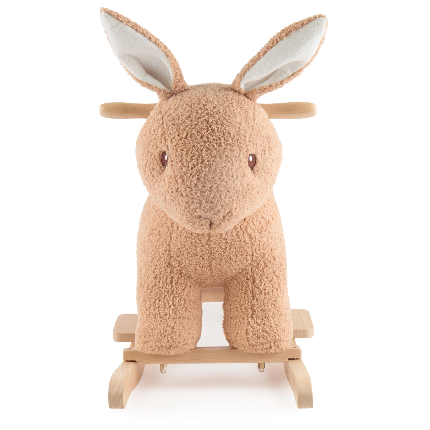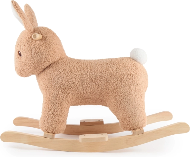 Bieco schommelkonijn Fine van bouclé op houten glijders