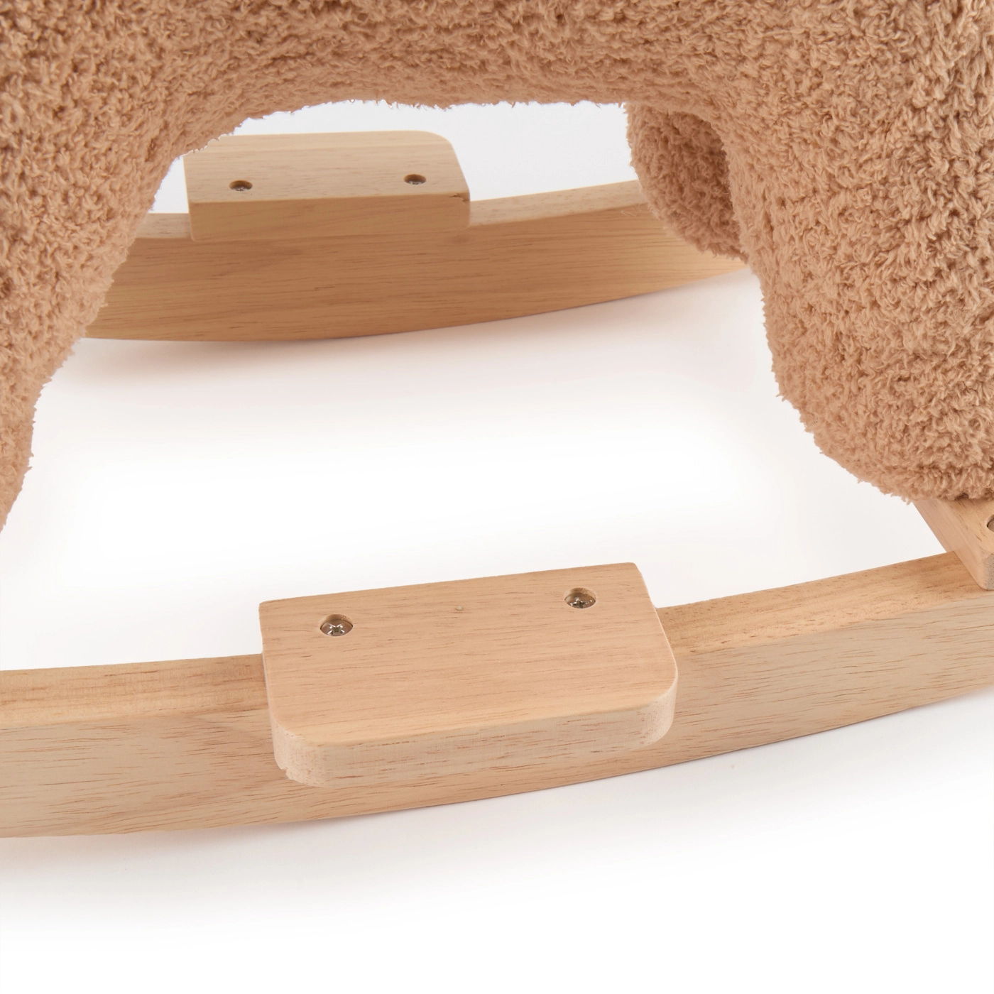 De robuuste houten basis met soepel afgeronde glijders en ingebouwde kantelbeveiliging zorgt voor veilig en vloeiend schommelen.
