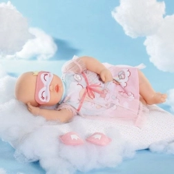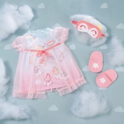 Met deze nachtjapon voelt Baby Annabell zich als op een wolk. Dankzij de tule overskirt en vrolijke schapenmotieven zal je pop elke nacht met plezier in slaap vallen. Het avondritueel wordt ook vergezeld door een schattig slaapmasker en pantoffels die gemakkelijk uit te trekken zijn.
