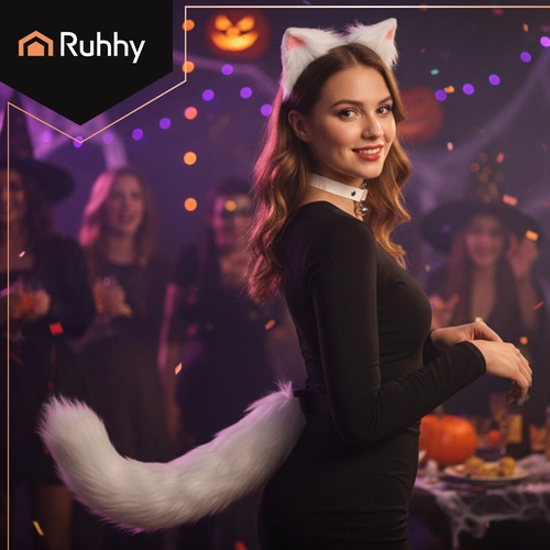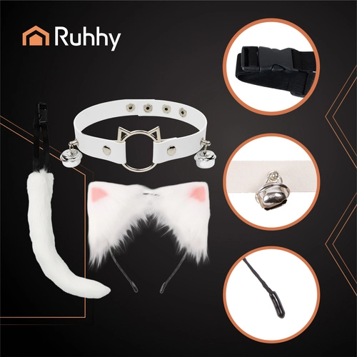 Stijlvolle 3-delige RUHHY set in het wit die elke outfit in een oogwenk transformeert. Bevat een zachte staart met buigzame draad, een haarband met oren en een verstelbare choker met belletjes. Ideaal voor cosplay, fotoshoots, feestjes en TikTok – licht, comfortabel en klaar om meteen te dragen. Complete 3-in-1, aangename kunstbontafwerking, verstelbare choker en staart en universele maat voor verschillende lichaamstypes.