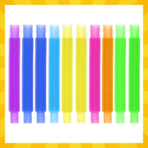 De set van 10 sensorische buizen biedt speelse stimulatie voor kinderen en volwassenen. Door de verschillende weerstand tijdens het uittrekken geven ze rijke sensorische prikkels, ondersteunen ze de oog-handcoördinatie en de concentratie. Tijdens het manipuleren maken ze rustgevende popgeluiden die helpen bij kalmeren en focussen.