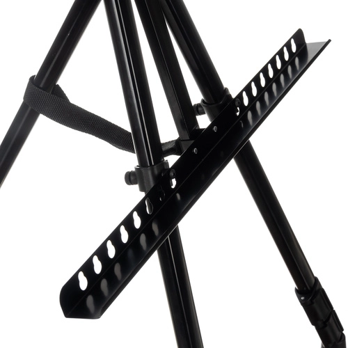 Telescopische poten, vergrendelingen en een bovenklem houden het doek stevig vast. Geschikt om zittend of staand te schilderen en eenvoudig inklapbaar voor op reis.