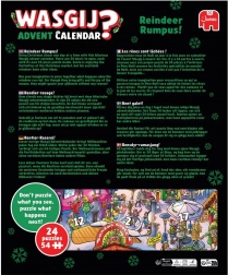 Maak het aftellen naar kerstavond nog leuker met de WASGIJ adventskalender: Dolle rendieren! Deze kalender brengt een uniek concept, waarbij het eindbeeld niet overeenkomt met dat op de doos. Je zoekt naar aanwijzingen, gebruikt je fantasie en legt de scène vanuit een ander perspectief. Ideaal cadeau voor puzzelliefhebbers en ervaren puzzelaars die iets nieuws willen proberen.